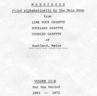 Marriages from Lime Rock Gazette, Rockland Gazette, Courier Gazette of Rockland, Maine.Entry/Object ID