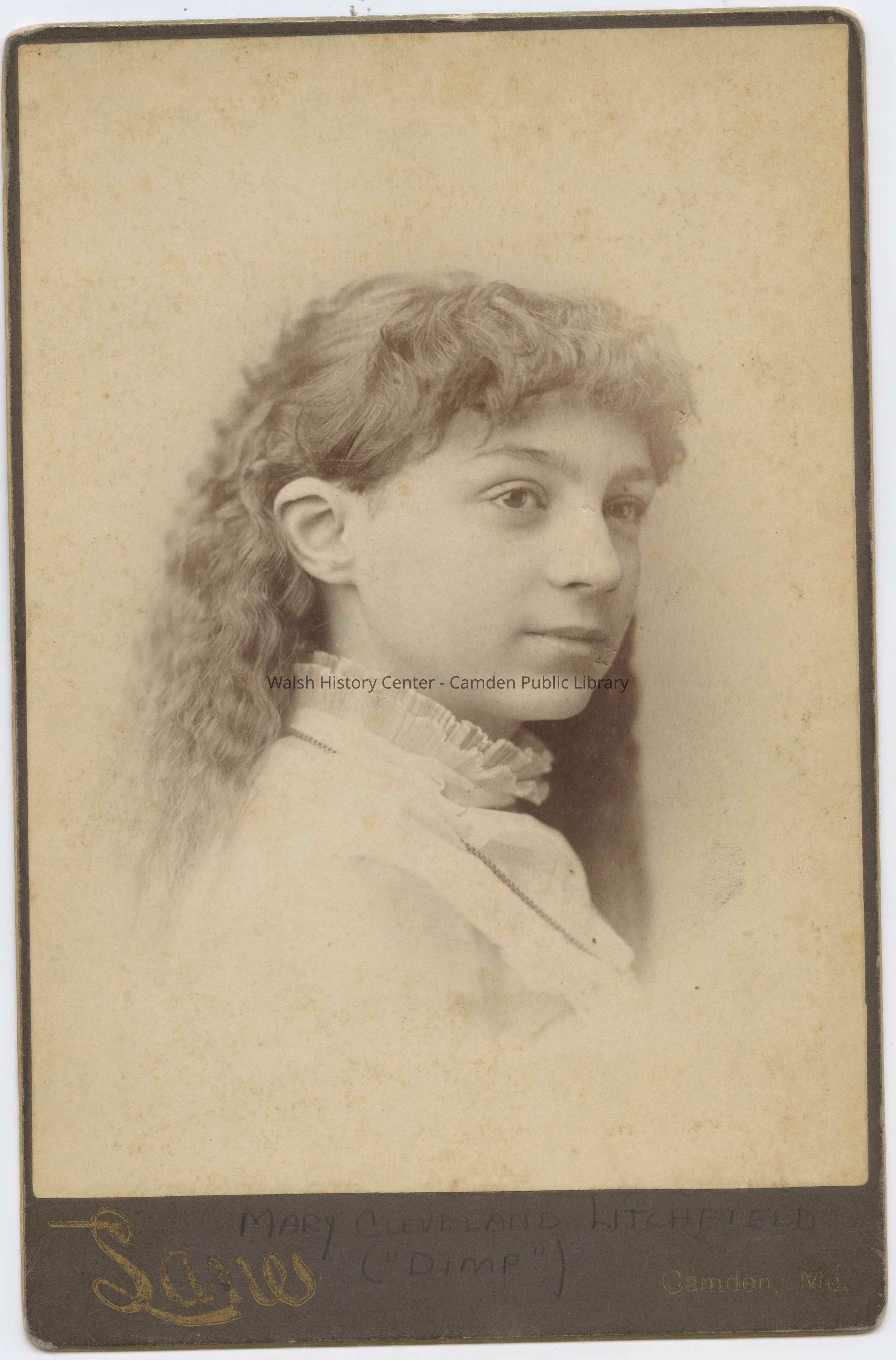 Sepia cabinet card photograph of Mary Cleveland Litchfield. Her nickname was "Dimp."Collection