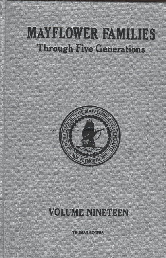 Volume 19 of the Mayflower Families Through Five Generations series. This volume records the descendants of Thomas Rogers and his wife Alice. Alice and their children did not follow Thomas to Plymouth, except for their son Joseph. Thomas died in the winter of 1620.