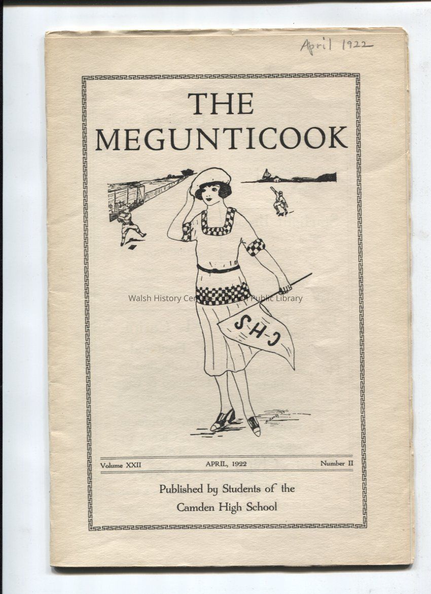 Camden High School publication. April 1922. Vol 22, Number 2. Includes advertisers, editorials, student articles, and photos of the editorial staff, boys and girls basketball teams.