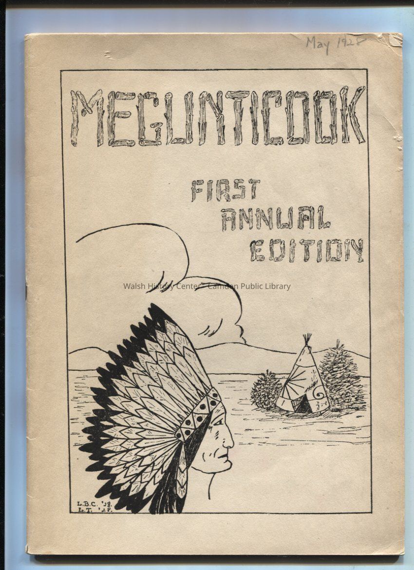 Camden High School publication. May 1928. Vol XXIX, Number 1. Includes advertisers, editorials, student literary essays and poems, jokes, alumni notes and athletics reports. Photos include junior prize speakers, sophomore prize speakers, senior class, boys and girls championship basketball teams, the Megunticook editorial staff and the senior play members.