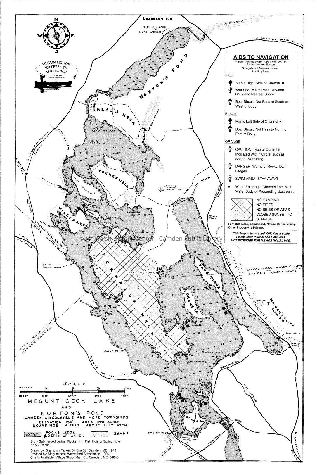 Originally drawn by Brampton Parker in 1948 and revised by the Megunticook Watershed Association in 1990Collection