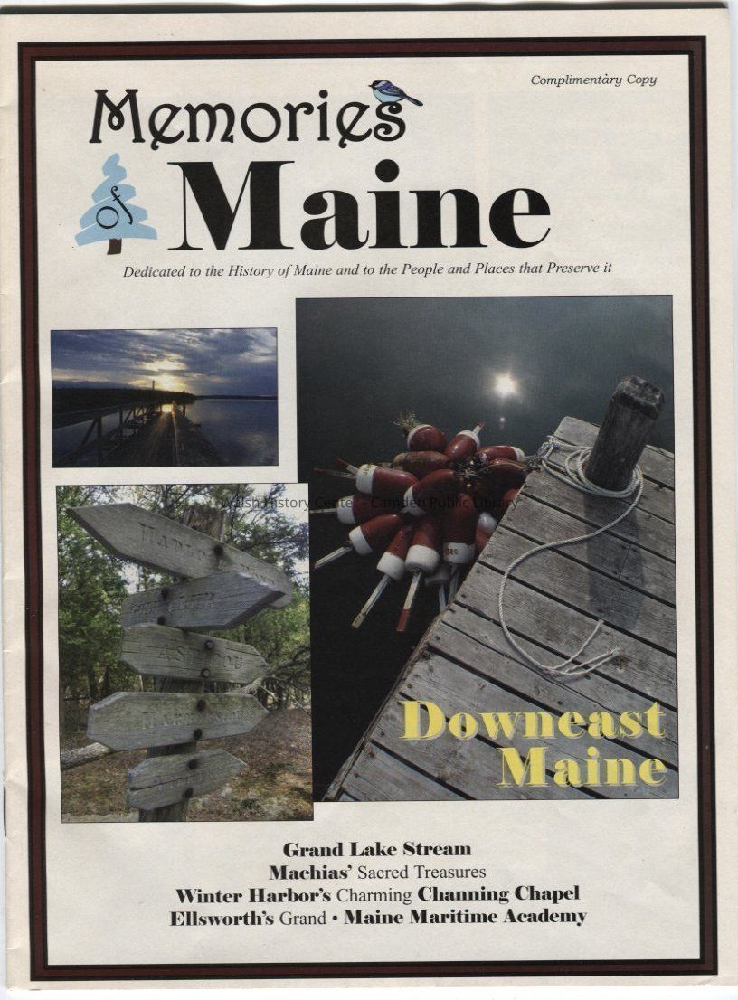 Includes articles on Bucksport's Northeast Historic Film Company, Maine Maritime Academy, Hancock County's Grand Theater, Col. John Black's mansion "Woodlawn" in Ellsworth, Winter Harbor's Channing Chapel, Machias' Centre Street Congregational Church, St. Croix Historical Society's exhibit and the story of "Holmstead", and Grand Lake Stream.
