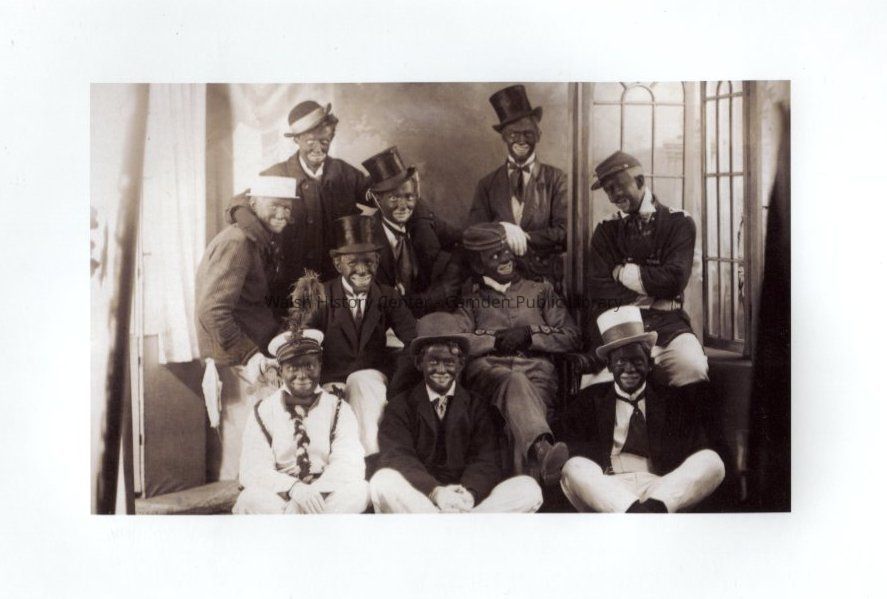 Photograph of several men in blackface for a minstrel show in Camden.Collection