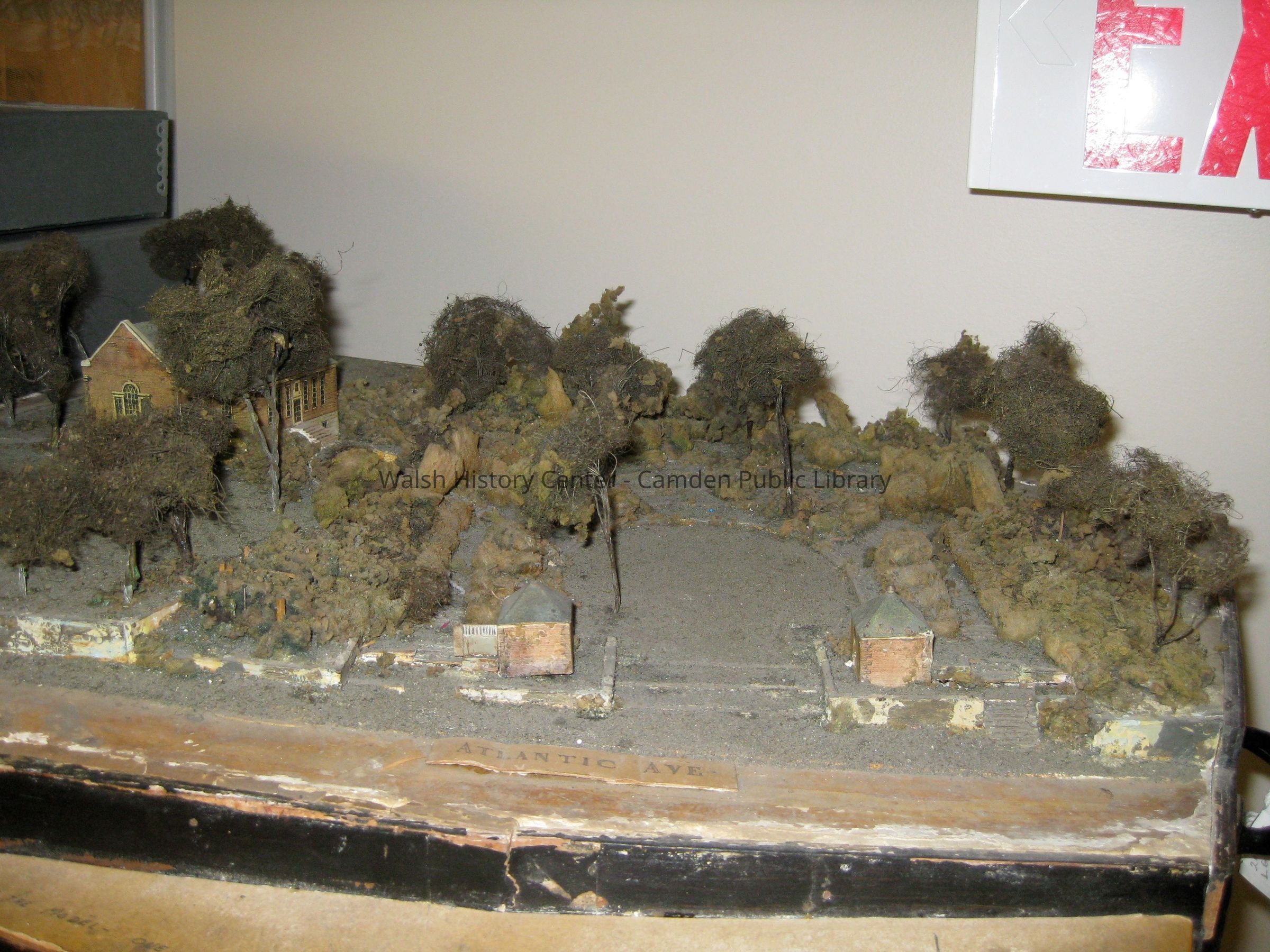 Fletcher Steele model of landscape design for Camden Library grounds and amphitheatre. Was displayed in the window of Boynton McKay according to the Camden Herald.Collection