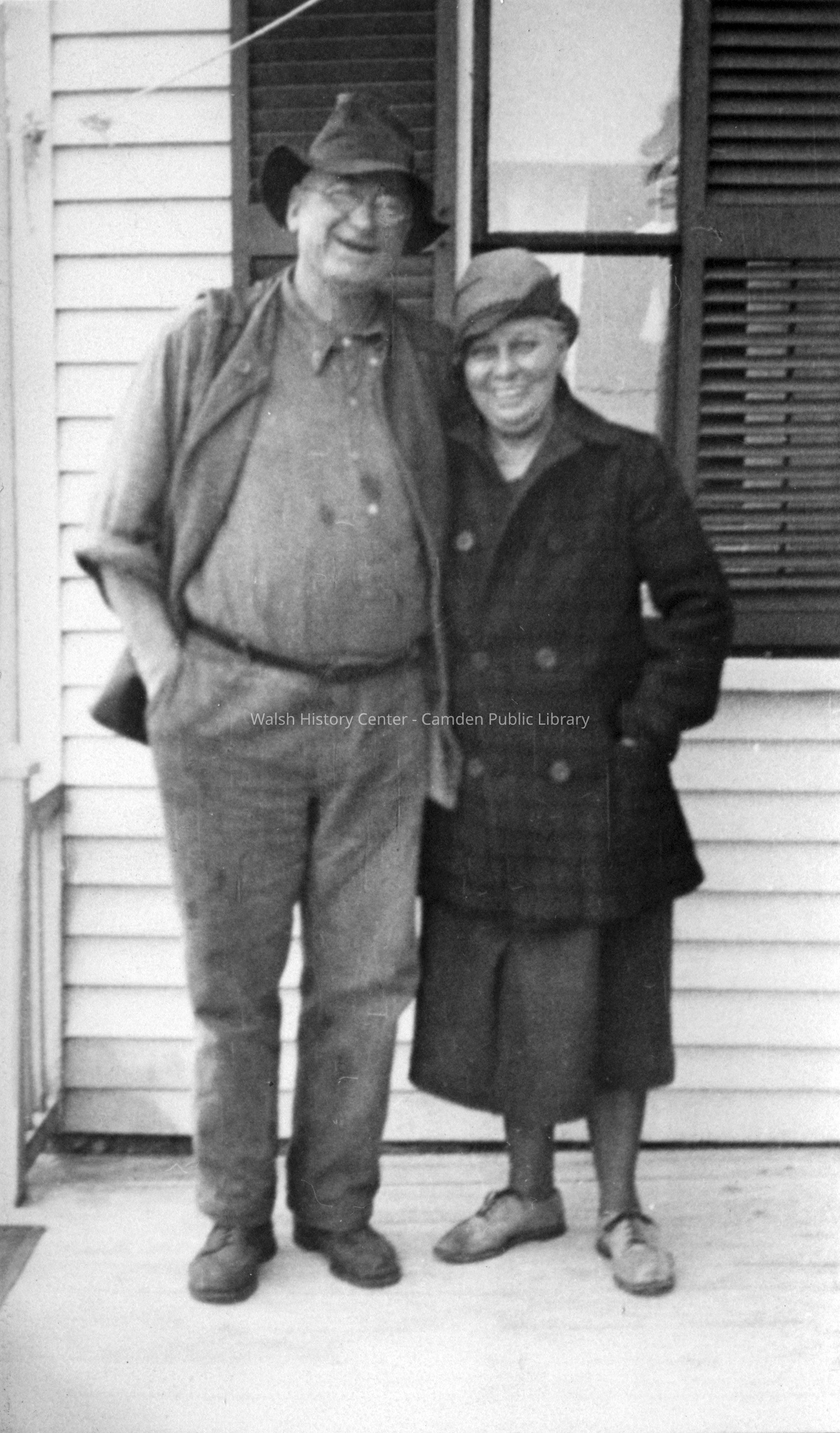 Photo (b/w) of Jay and Mame Potter of Potter Studio. Handwritten on back: "Got all ready to send you X-mas card like this and not one left so will send this {?} for you to burn up. Merry X-mas from Potter." Jay Potter was a photographer in Camden at the turn of the century.Collection