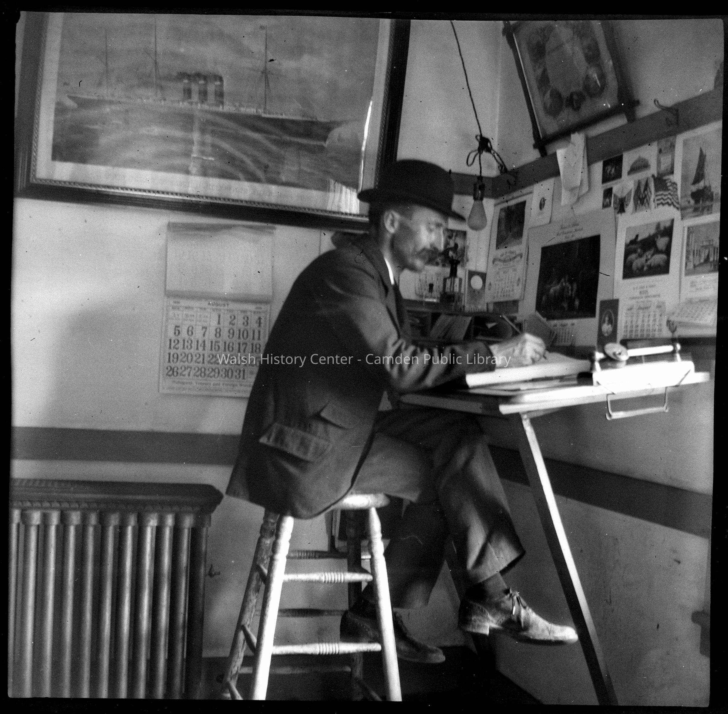 Photograph of Mr. Greenwood in the Knox Woolen Mill office in August 1900.Collection