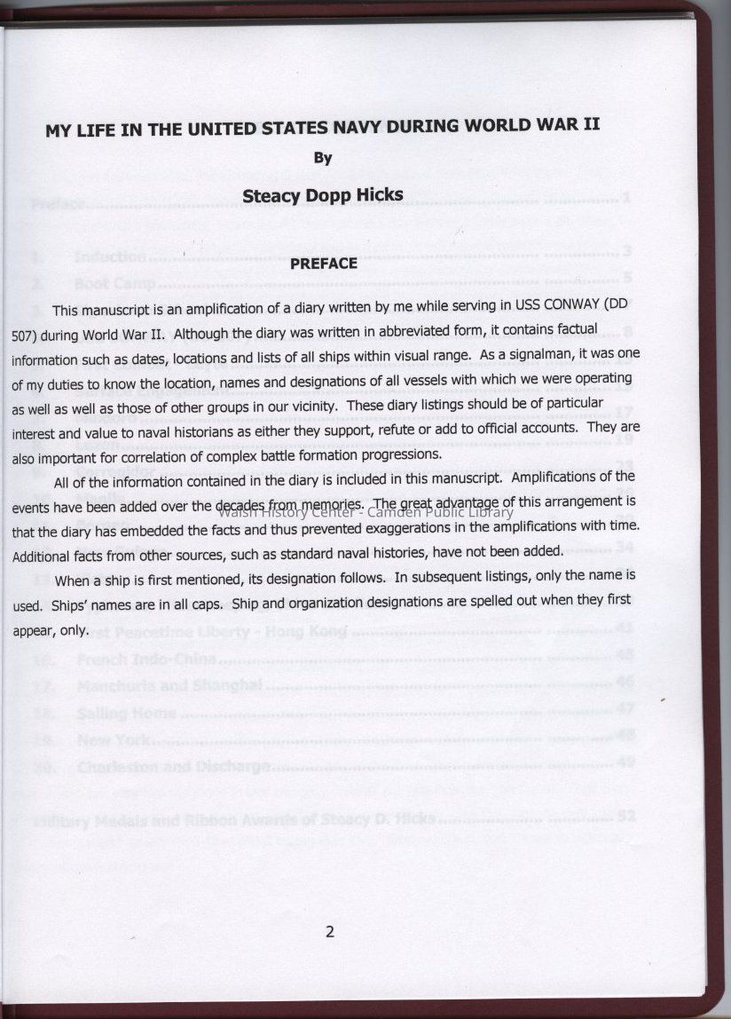 Memoir written while serving on board the USS CONWAY during World War II.