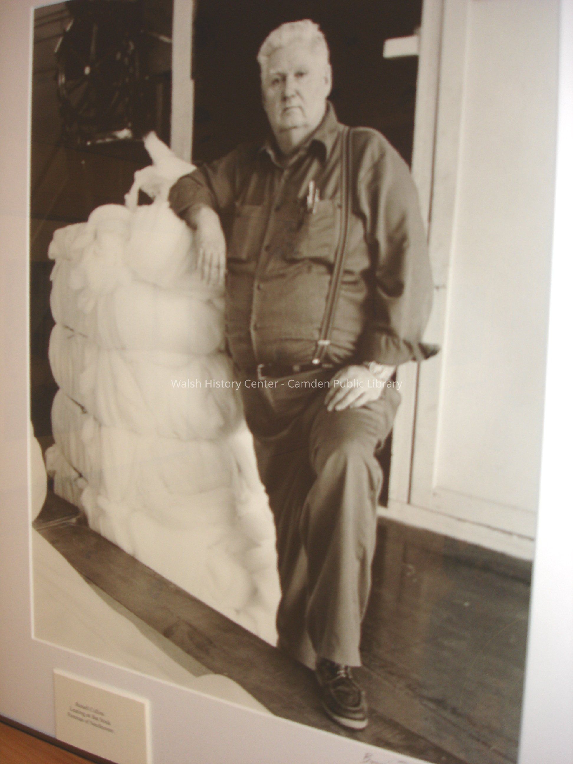 Needle Room foreman Russell Collins leaning on bat stock in the Knox MillEntry/Object ID