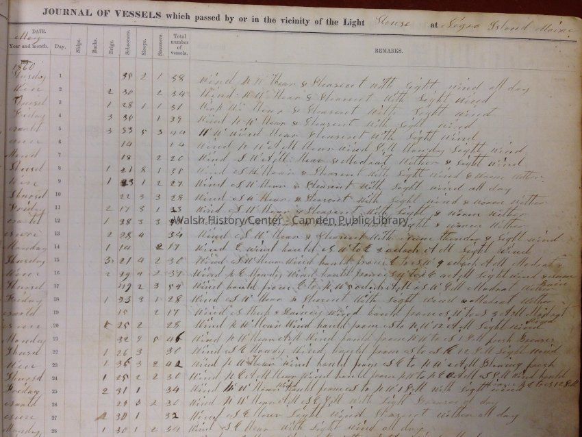 Negro Island Light Station journal dated April 1, 1860 to December 31, 1863. Journal tracks passing ships and daily weather. Lighthouse keepers at the time were Andrew M. Annis (1860-March 1861) and Isaiah Barbour. The original lighthouse was built by George Galt in 1835. The federal government began requiring records of lighthouses in 1872.Collection