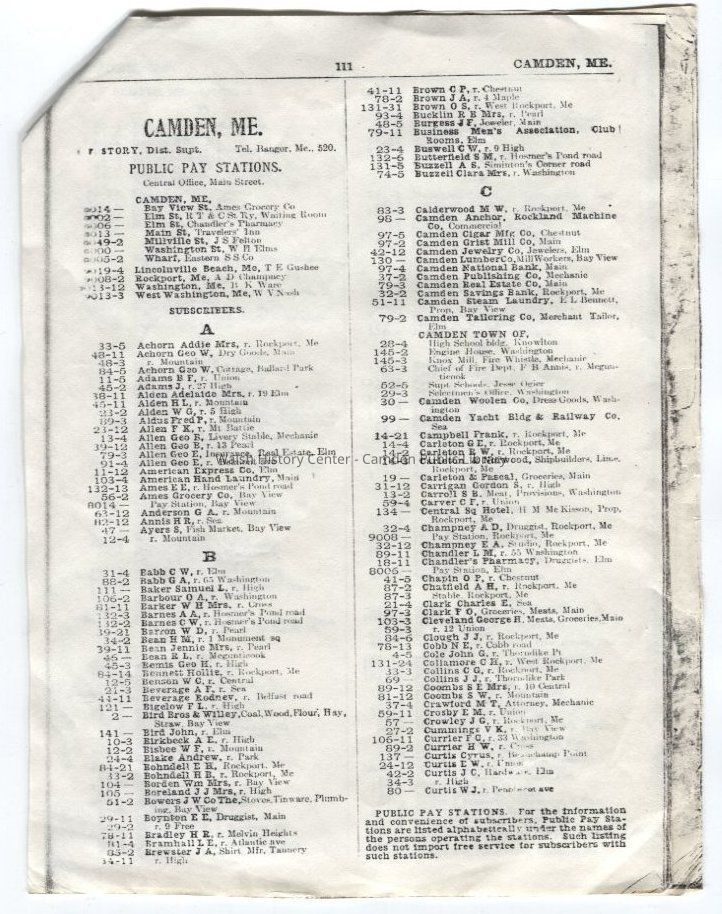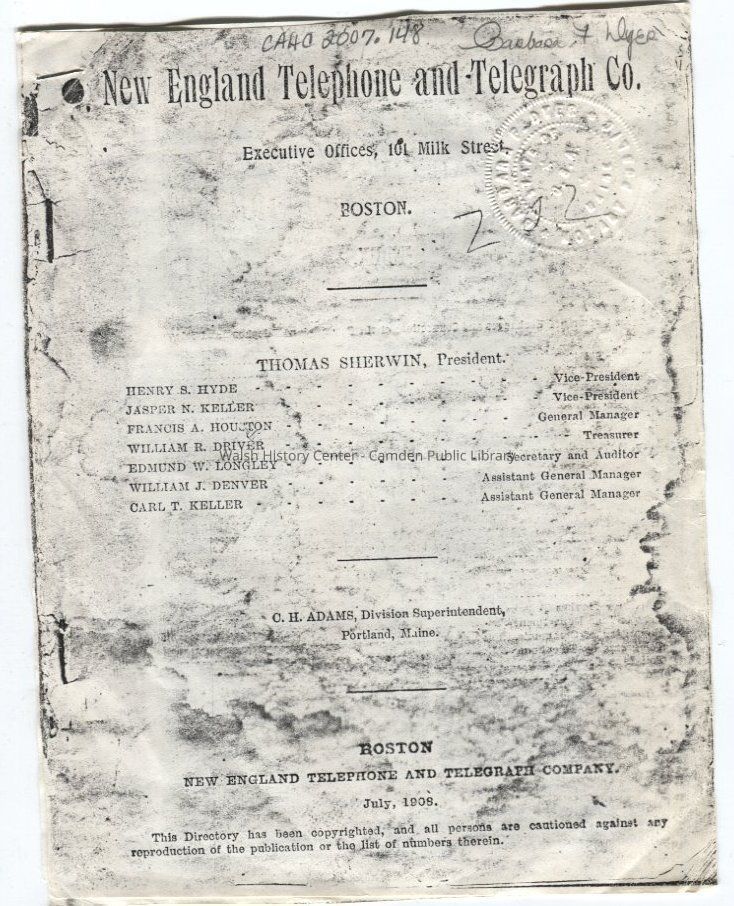 New England Telephone and Telegraph Co. Camden Directory 1908Entry/Object ID