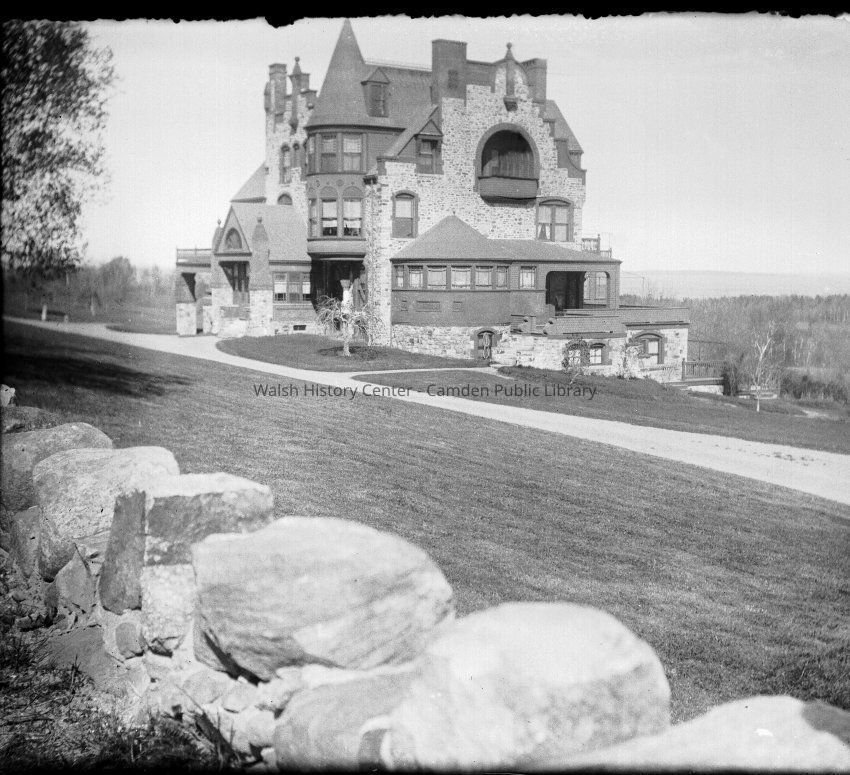 Glass plate negative of Norumbega, the estate of Joseph Stearns on High Street in Camden, Maine.Collection