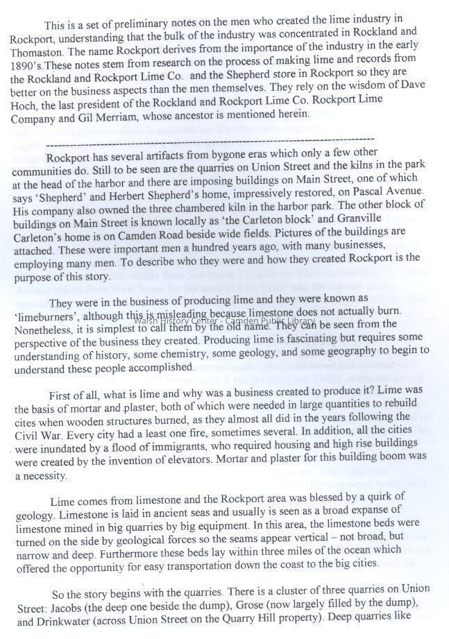 Notes on the Lime Industry in Rockport focusing on Herbert ShepherdEntry/Object ID