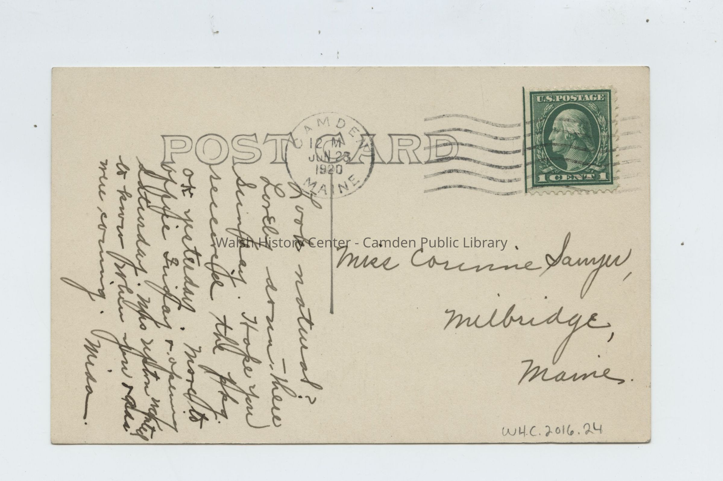 Addressed to Miss Corinne Sawyer, Milbridge, Maine.Collection