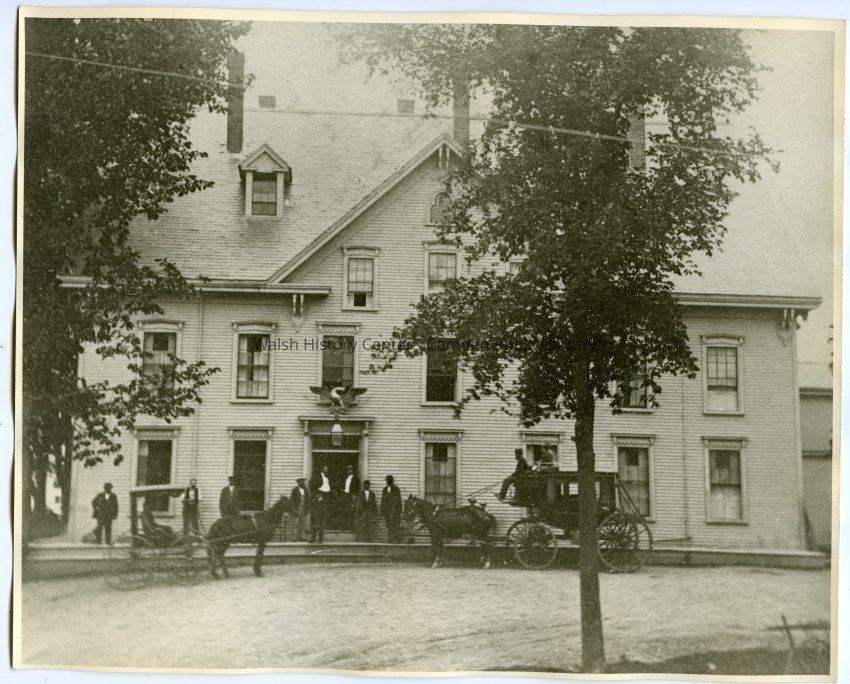 Front of Ocean View House, with stage coach at the door and several men bystanding.Collection