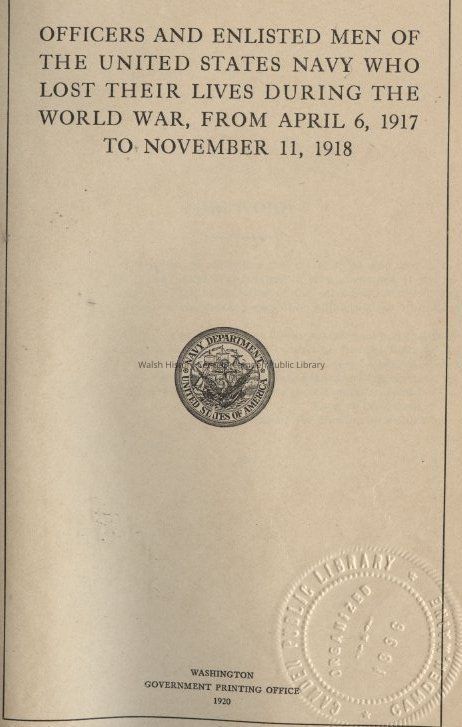 Officers and Enlisted Men of the United States Navy Who Lost Their Lives During the World Ward, From April 6, 1917 to November 11, 1918Entry/Object ID