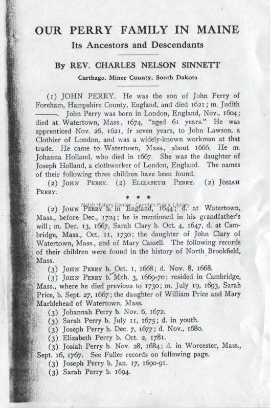 Our Perry Family In Maine - Its Ancestors and DescendantsEntry/Object ID