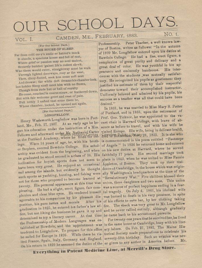 Vol. 1, No. 1 Camden, ME February 1883Description