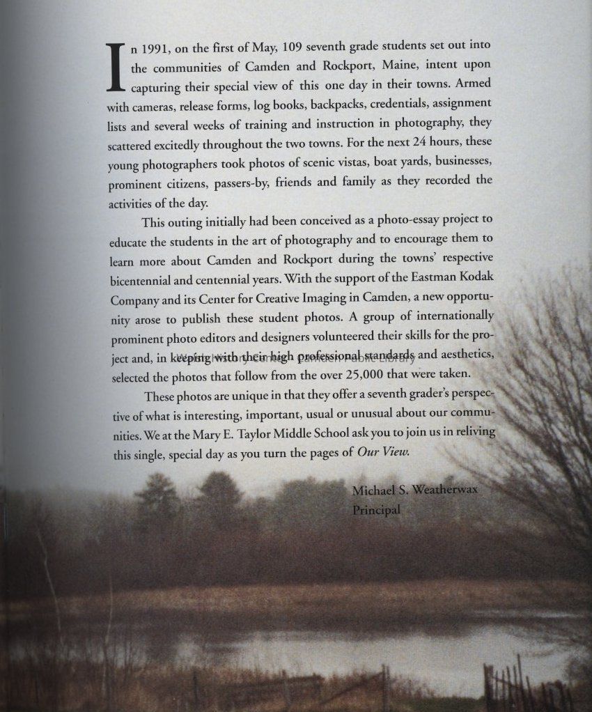 A day in Camden and Rockport, Maine as photographed by the Mary E. Taylor Middle School Seventh Grade Class on May 1, 1991Description