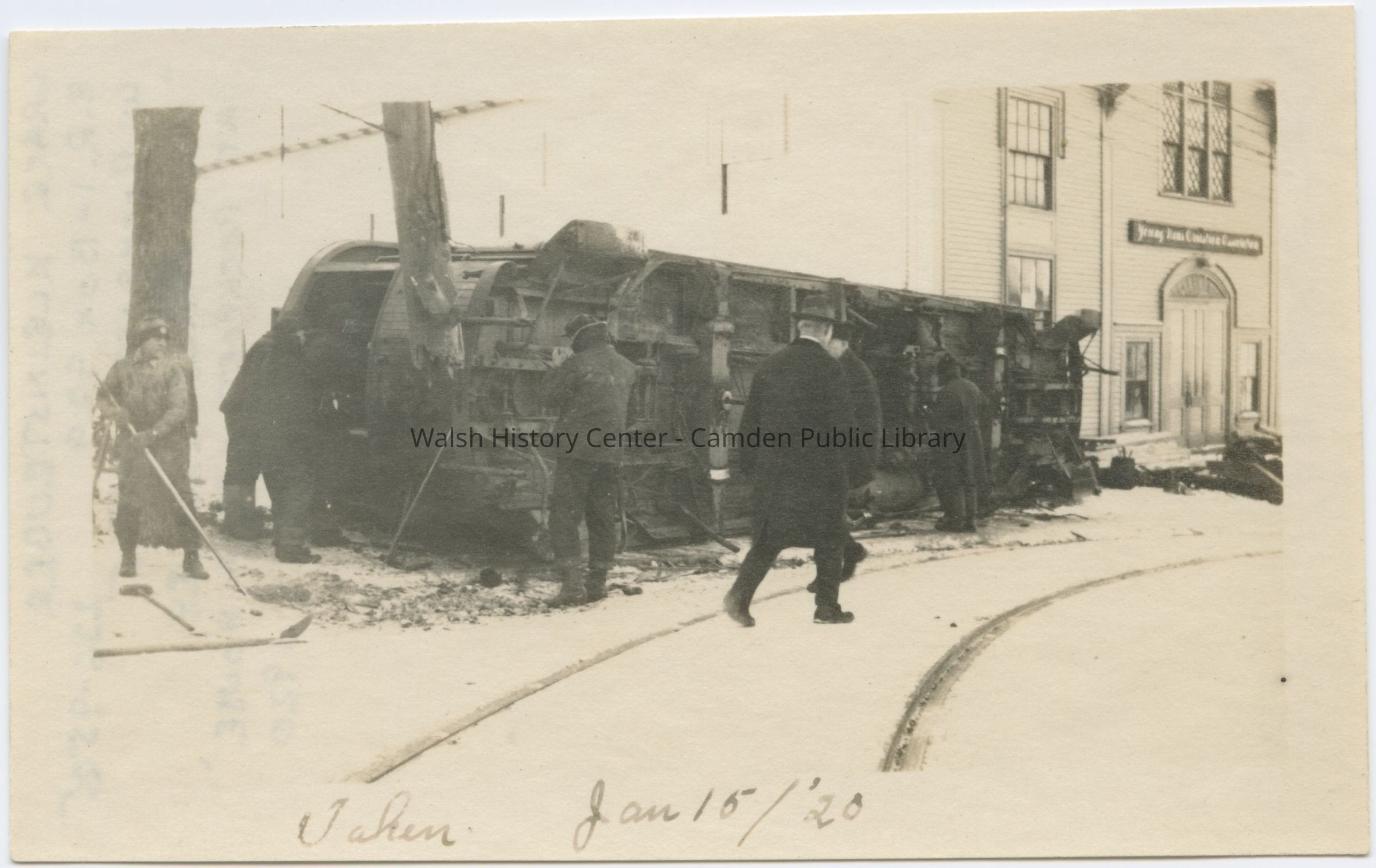 Overturned trolley at the Rockport Opera House, January 15, 1920Entry/Object ID