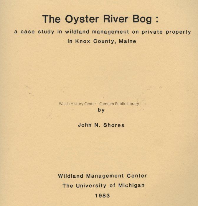 A case study on the Oyster River Bog in Knox County, Maine prepared as thesis requirement. Includes topics such as resources of the Bog, geological origins, physical and biological characteristics, history, concerns for the future, and the structure of a voluntary management association with conclusions of report and recommendations. A detailed appendices lists vascular plants, fauna, and avifauna for the Bog.