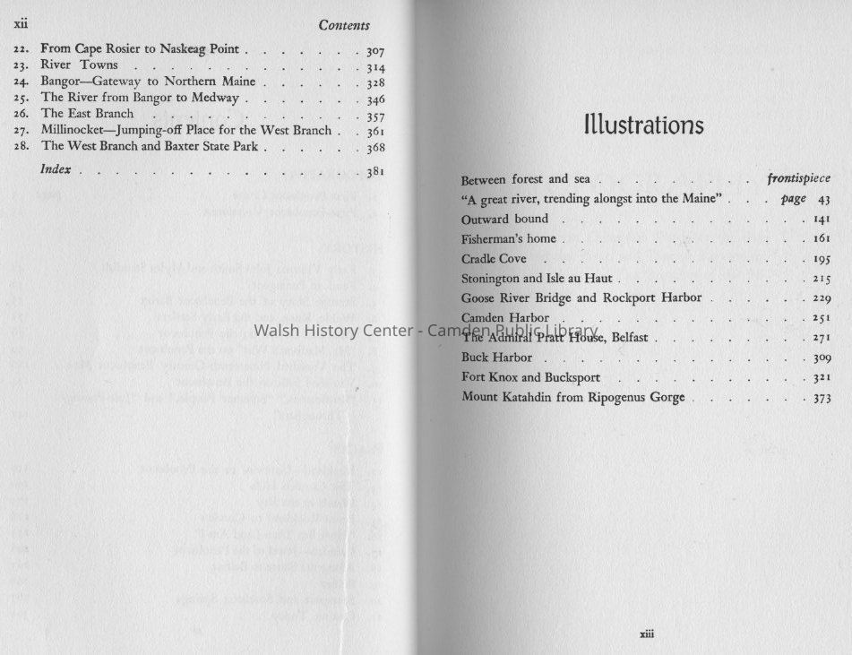 A history and a geographic description of the land bordering Penobscot Bay and the Penobscot River area. It includes the islands of Penobscot Bay as well. The work is illustrated by woodcuts done by Carroll Thayer Berry.