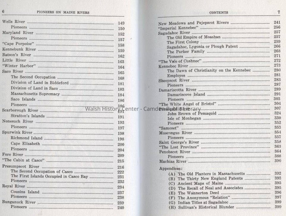 Androscoggin, Bunganuck River, Cape Neddick, Cape Porpoise, Casco, Damariscotta, Kennebec River, Kennebunk, Machias, Maine, Ogunquit, Penobscot River, Piscataqua, Royal River, Saco, Sagadahoc River, Scarborough, Sheepscot River, St. Croix River, St. George River, Union, Wells, York, Genealogy