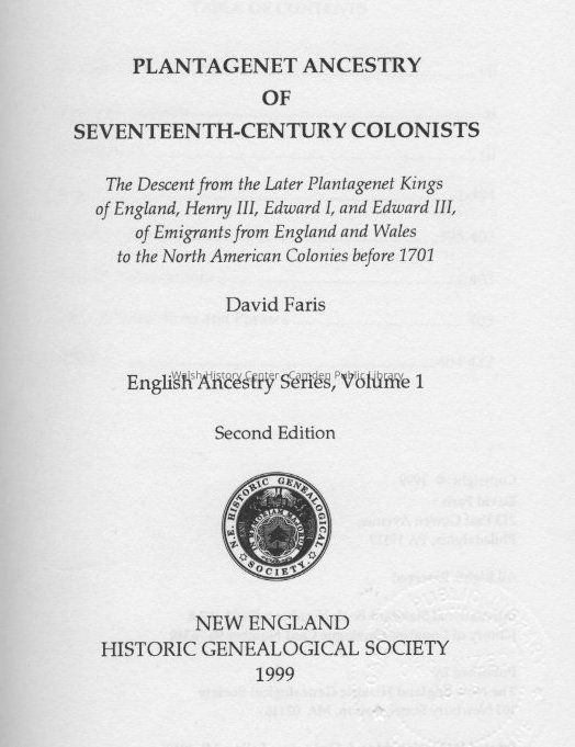 Plantagenet Ancestry of Seventeenth-Century ColonistsEntry/Object ID