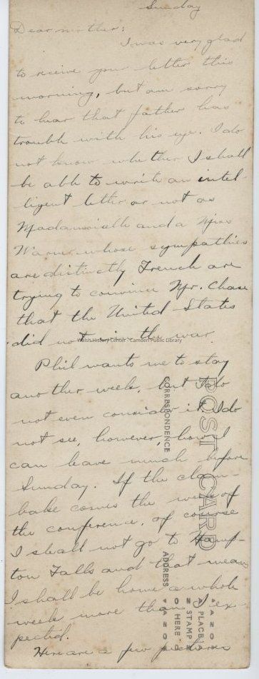 Photographic postcard with panoramic image of Barrett's Cove and Camden area from Maiden's Cliff. Handwriting on back.Collection