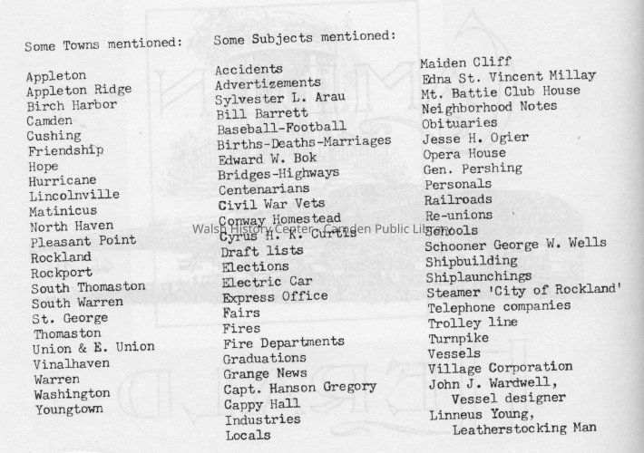 Pre-1900-1985 A Scrapbook History of Camden-Rockport and area from the files of the Camden HeraldEntry/Object ID