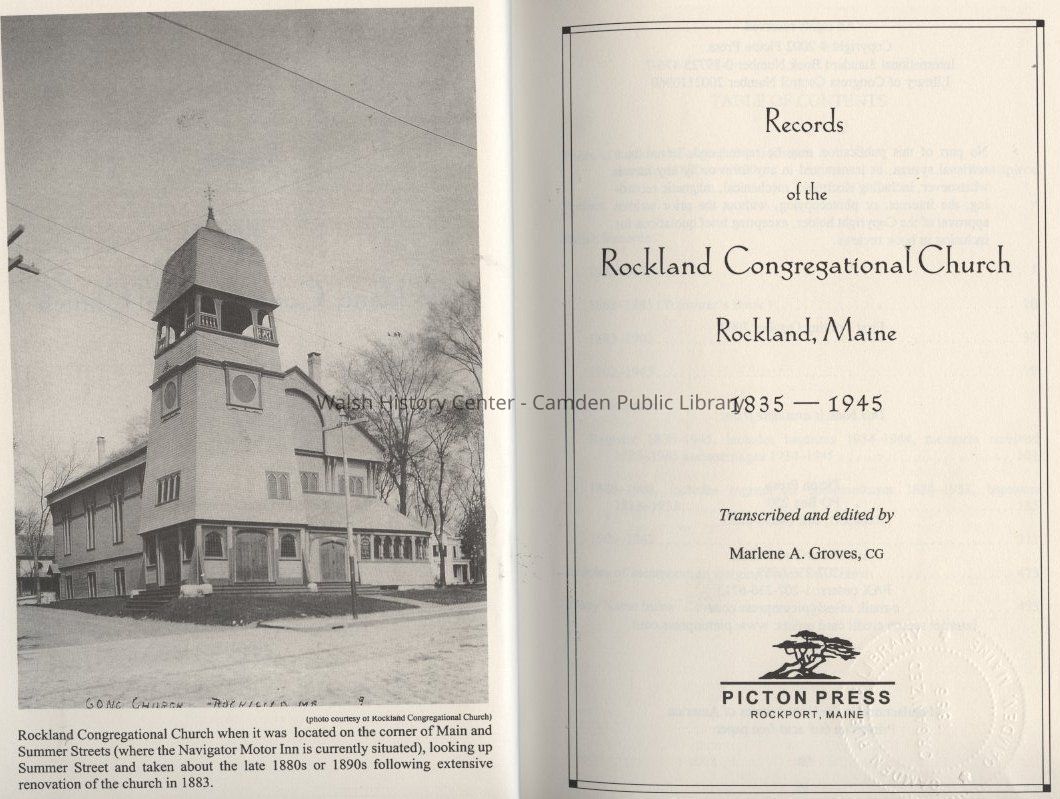 Records of the Rockland Congregational Church, Rockland, Maine 1835-1945Entry/Object ID