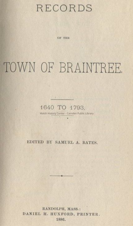 Braintree, Massachusetts, Holbrook, Massachusetts, Quincy, Massachusetts, Randolph, Massachusetts, Genealogy, Vital RecordsOther Names and Numbers