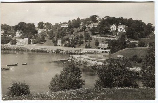 Image of Rockport harbor and the ruins of the lime kilns at the edge of the harbor.Collection