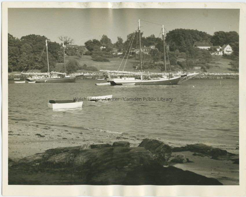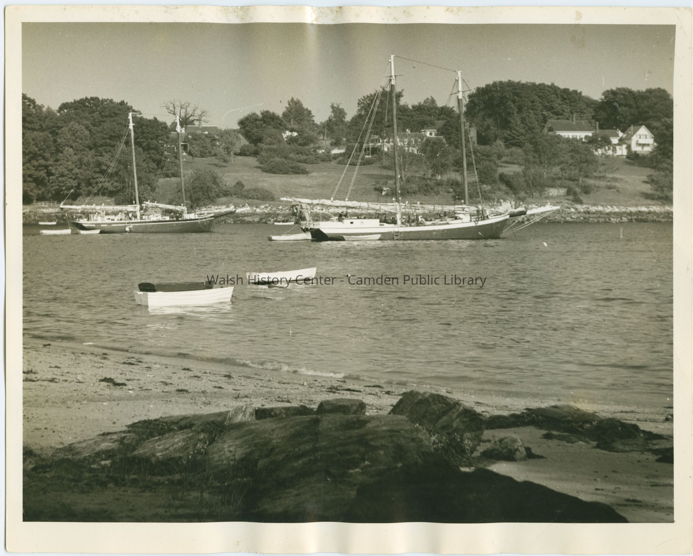 Undated black and white photo of 2 schooners in Rockport Harbor, most likely taken by Carroll Thayer Berry.Collection
