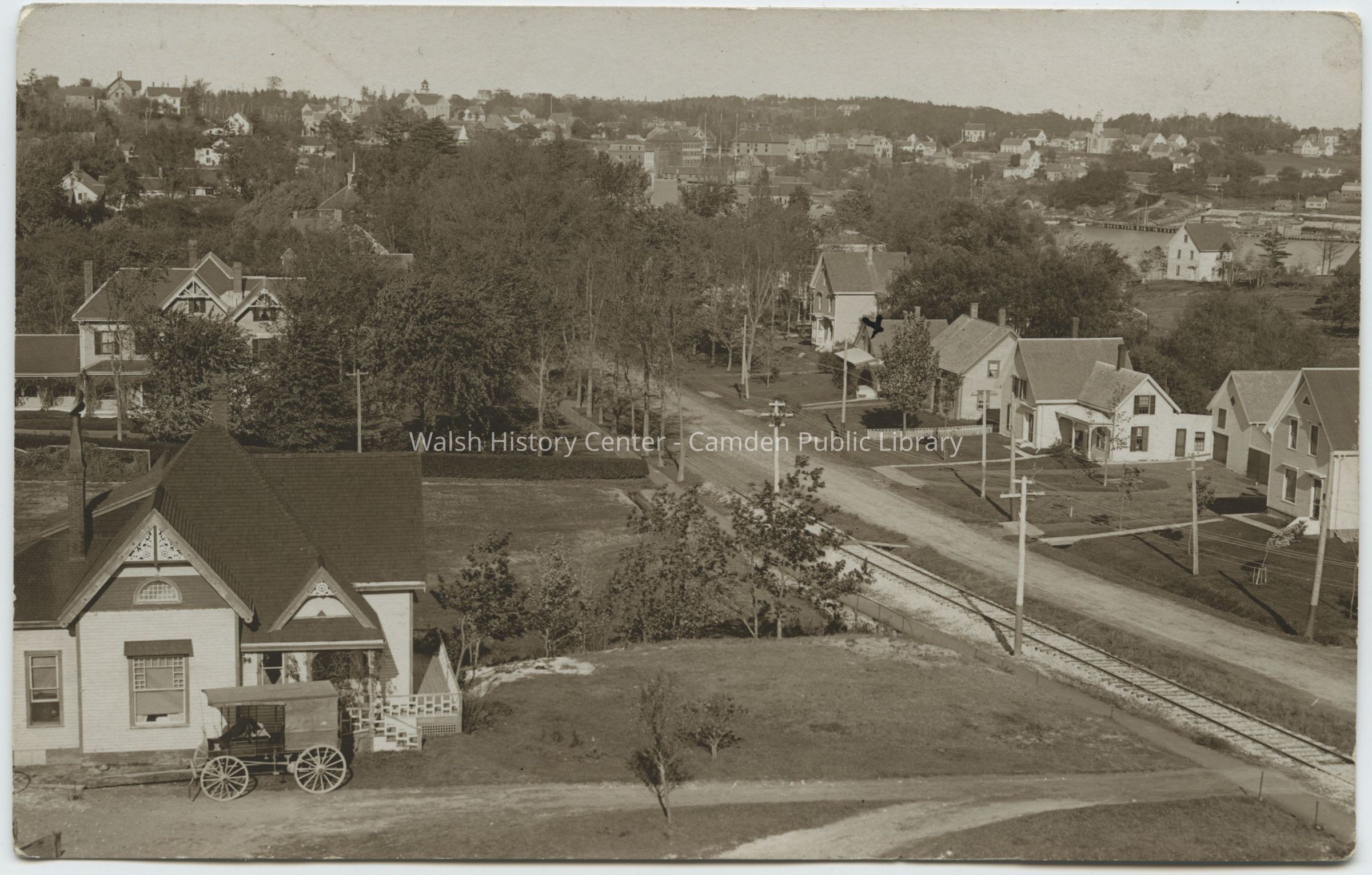 Real-photo postcard with a view of Pascal Avenue in Rockport, Maine around 1900.