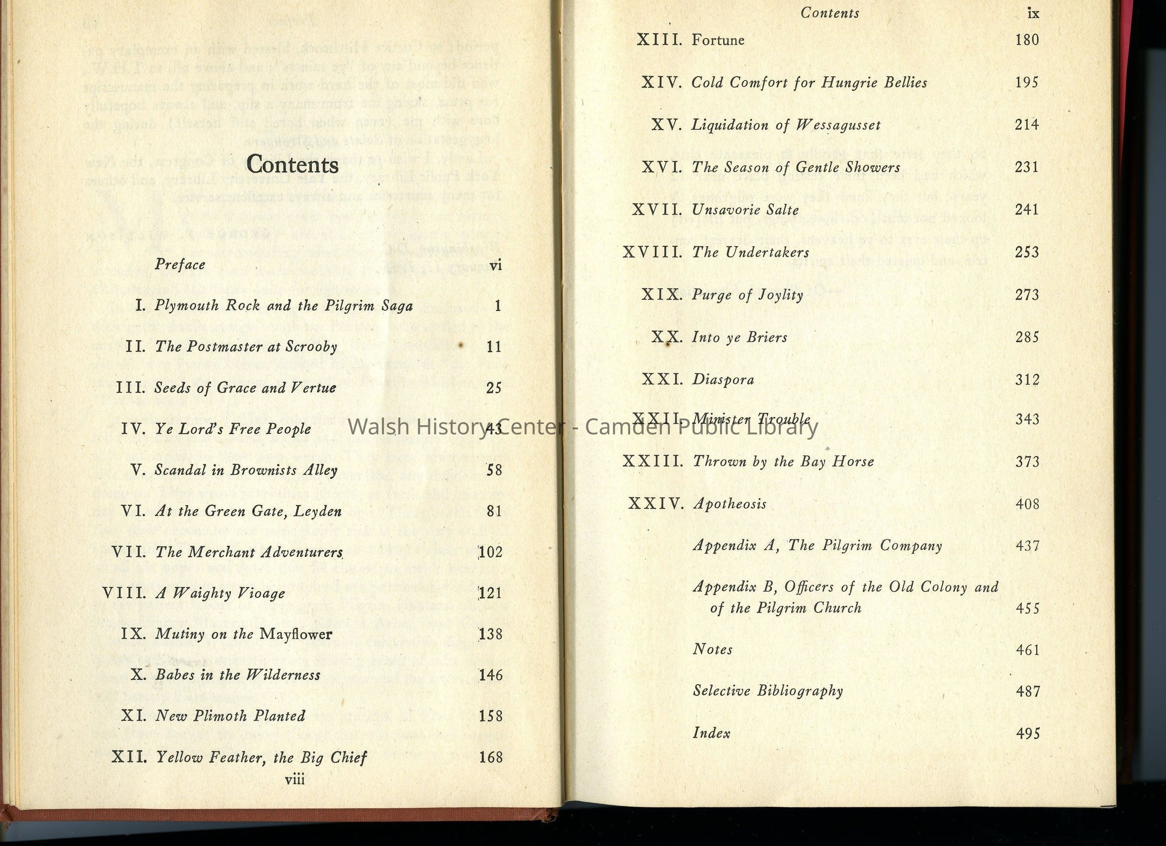 This book contains an excellent bibliography of all settlers who stayed and were granted land by 1631. Lists of individuals on particular boats, and biographical notes on the officers of the old colony including the church. Twenty pages of notes on each chapter is included and an extensive bibliography for resources.
