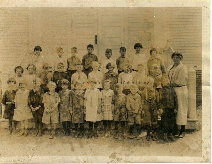 Original photograph of unidentified schoolchildren and their teacher, most likely at the Elm Street School in Camden.Collection