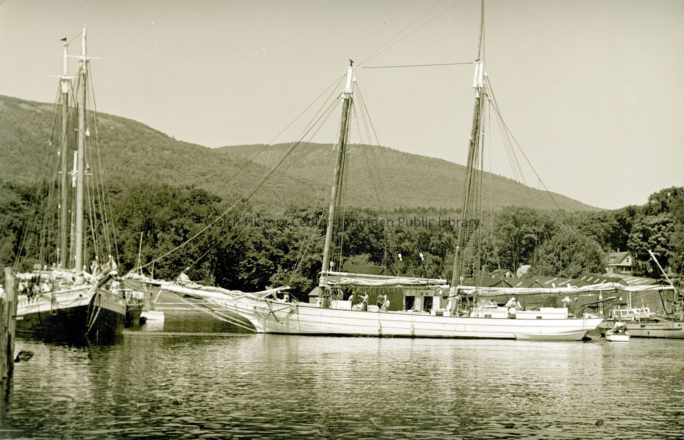 Photograph of the schooners "Eva Cullison" (white hull) and the "Enterprise" (left of image) circa 1940s.Collection