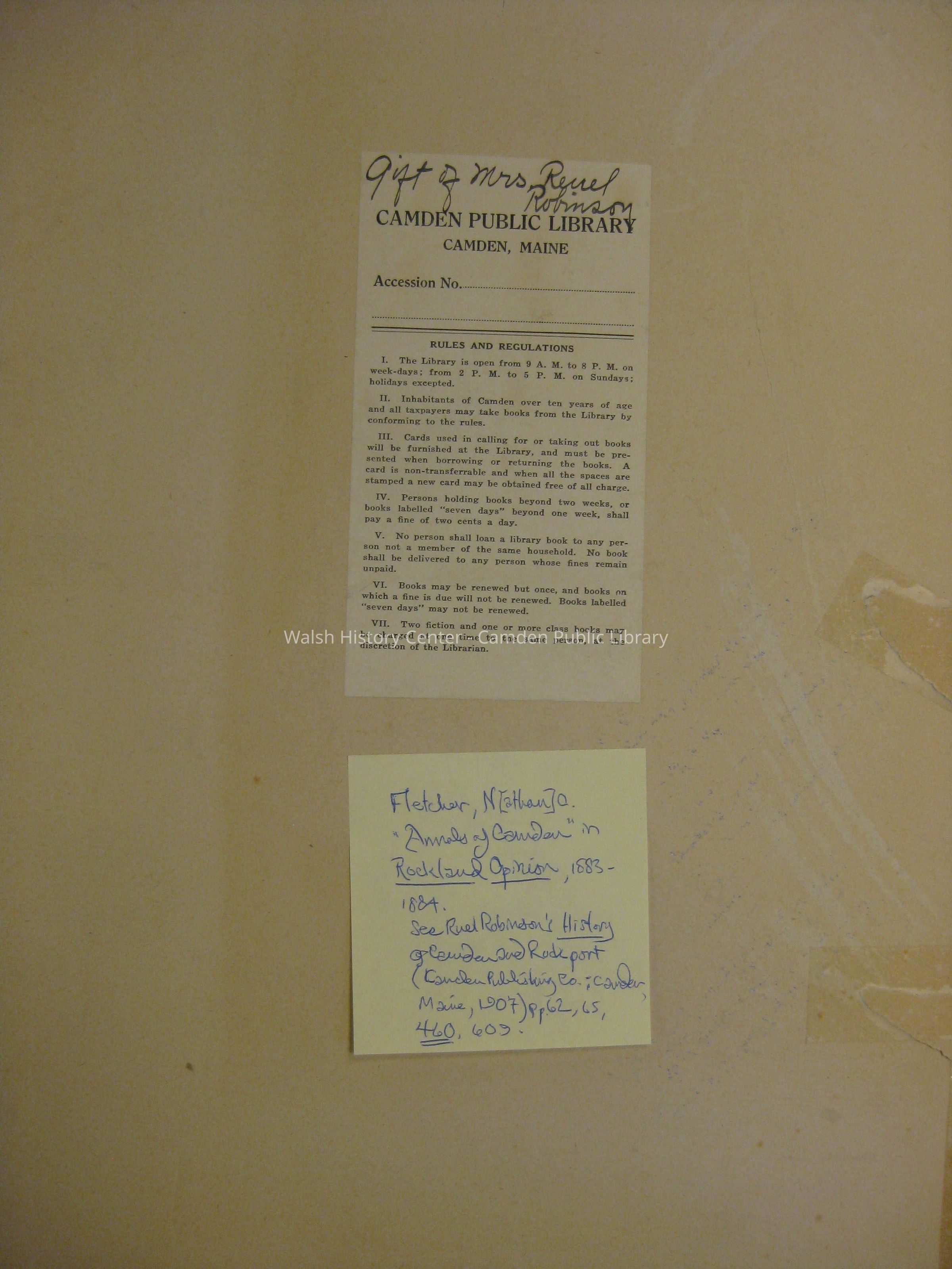 Annals of Camden, Maine, Rockland Opinion, Sigma, ReminiscencesArchive Details