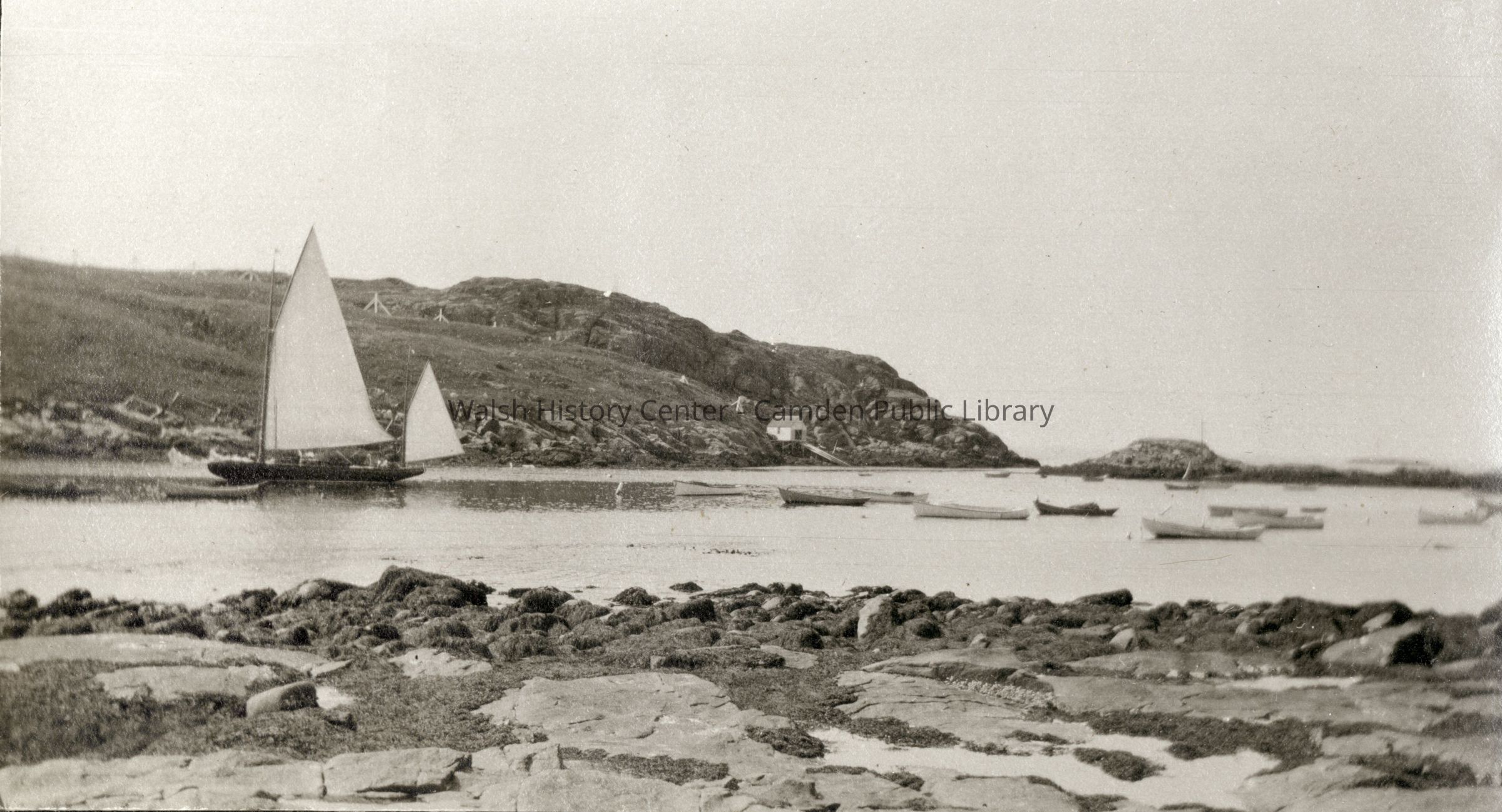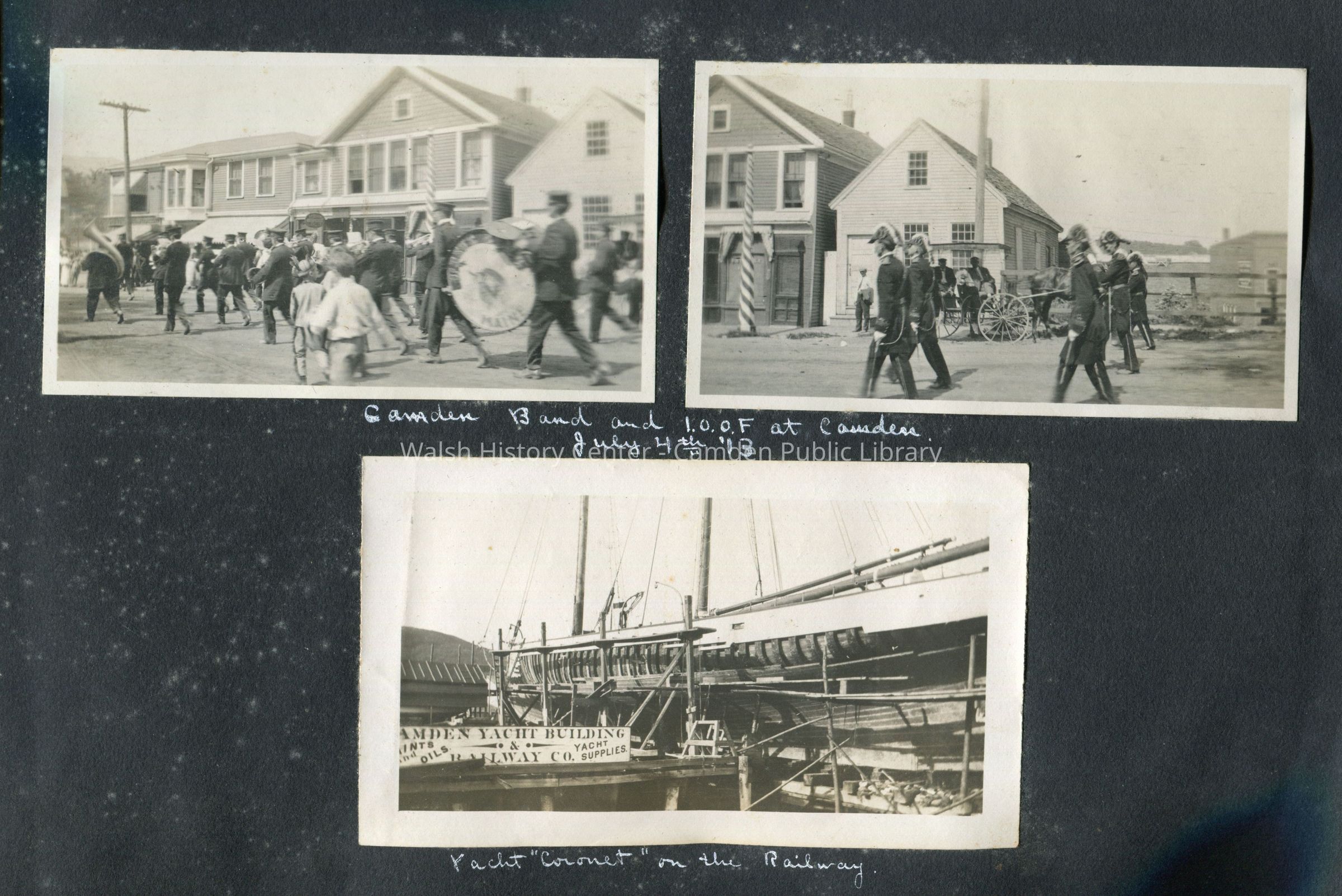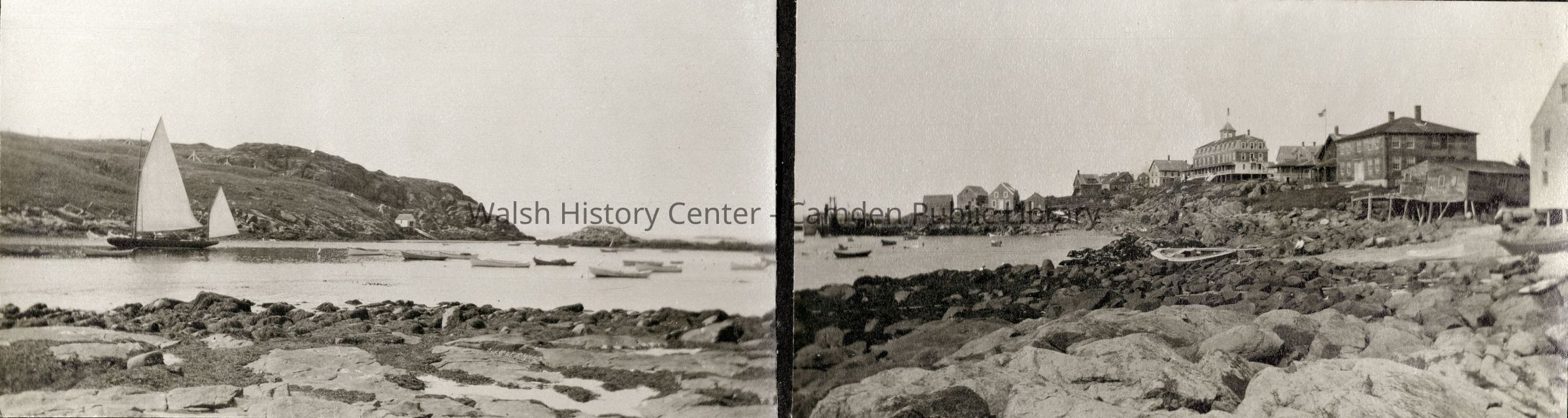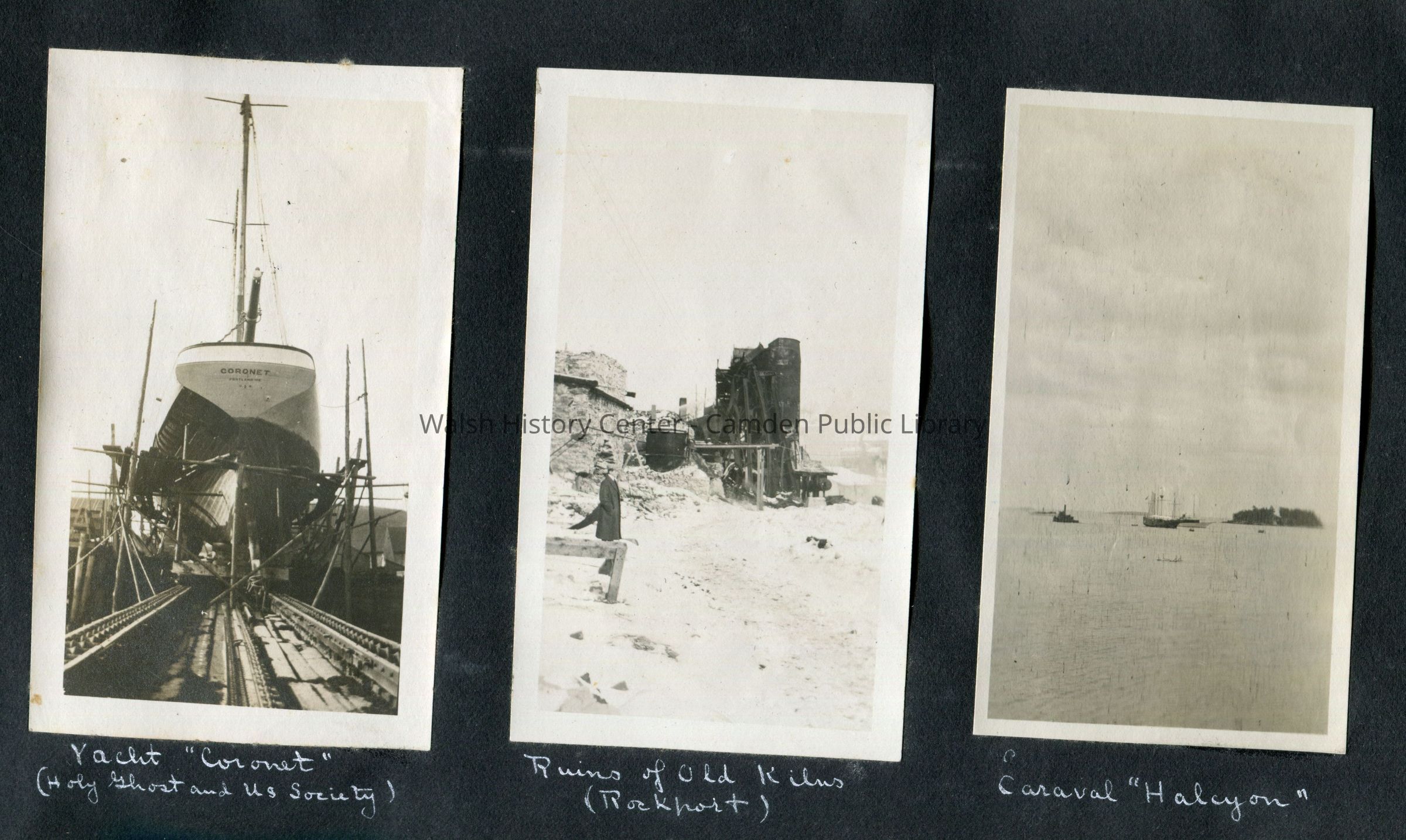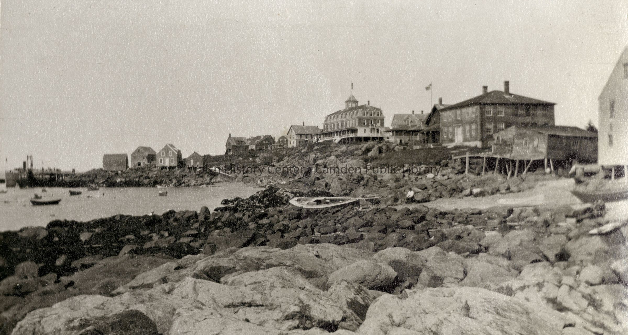 "Coronet", "H. F. Kimball", "Hastings", "S. S. Coban", "Warren B. Potter", Ault Cottage, Beauchamp Point, Camden, Camden Harbor, Camden High School Football Team 1907, Camden Trotting Park, Castine, Chickawaukie Pond, Crescent Beach, Griffin's Wharf, Hawe's Brook, Hosmer's Pond, Indian Island Light, Lily Pond, Lime Industry, Lime Kiln, Long Wharf, Maiden's Cliff, Maine, Manana Island, Megunticook Lake, Mirror Lake, Monhegan Island, Ragged Mountain, Rockport, Rockport High School, Rockport High School Football Team - 1914, Rockport Ice Company, Shear's Beach, Storey Manufacturing Company, The Birches, Turnpike, Waldoboro, Washington Street, Y.M.C.A. - Rockport