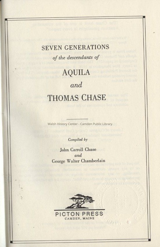 Seven Generations of the descendants of Aquila and Thomas ChaseEntry/Object ID