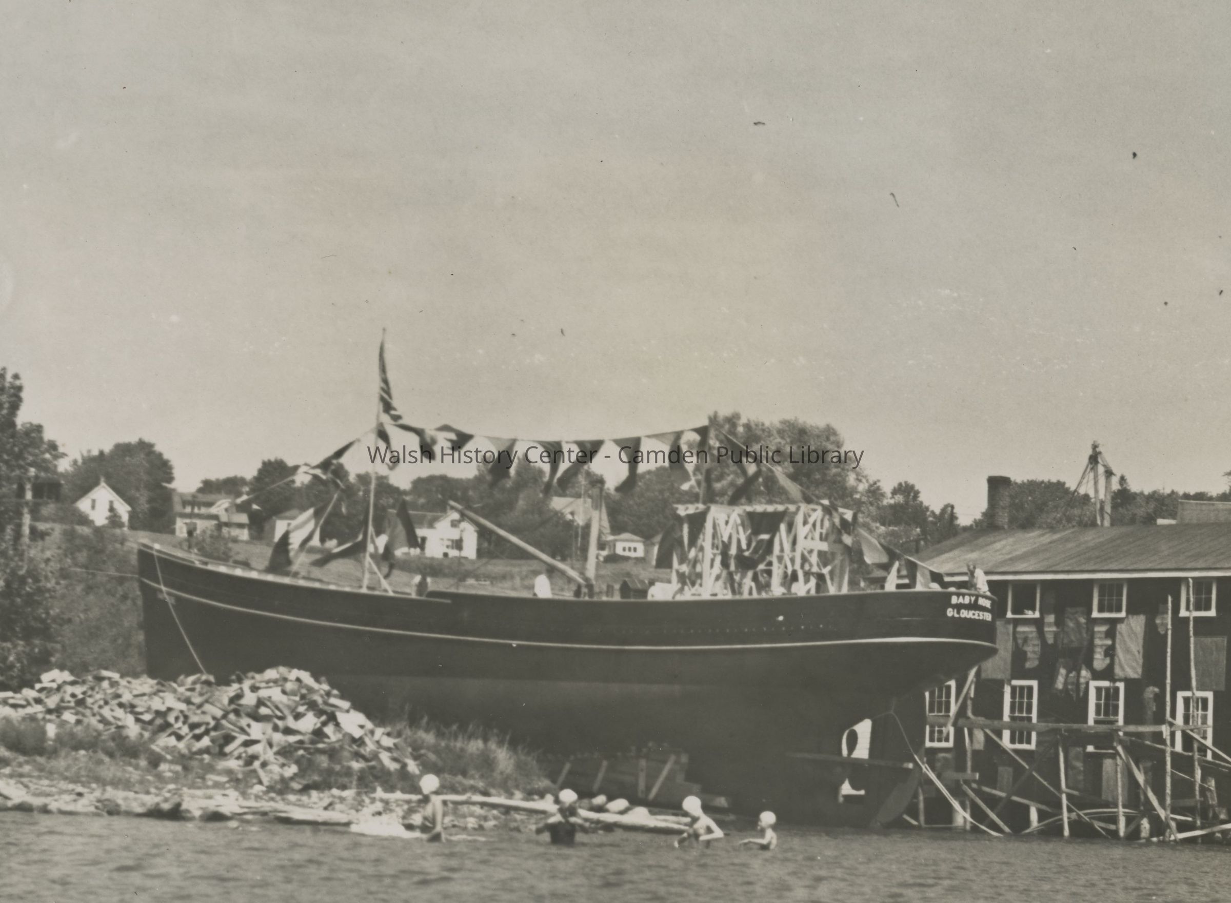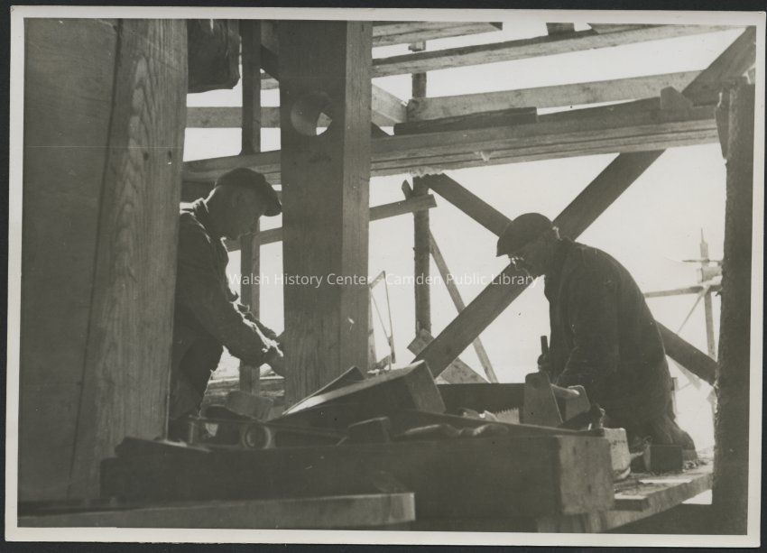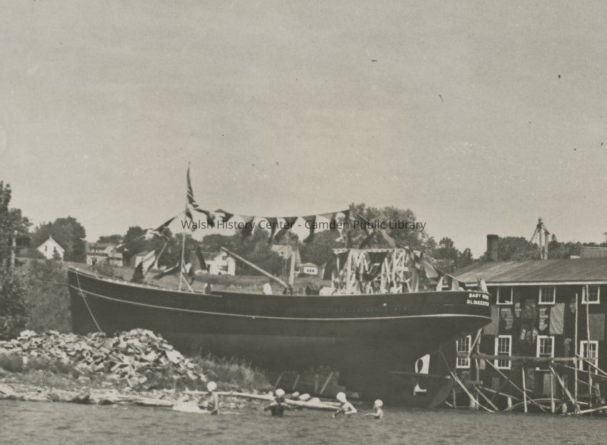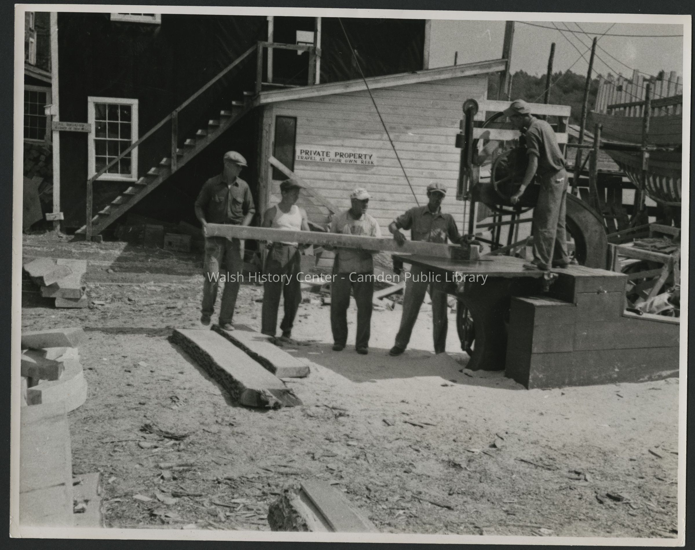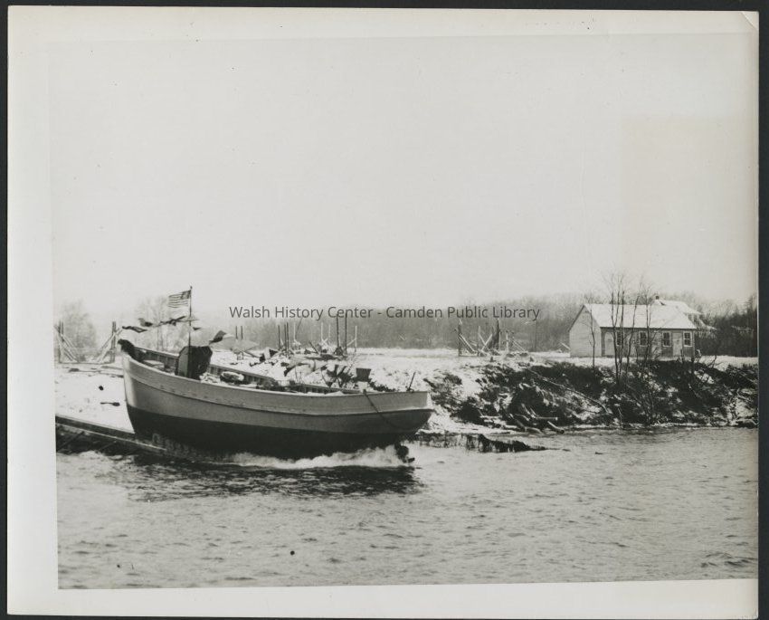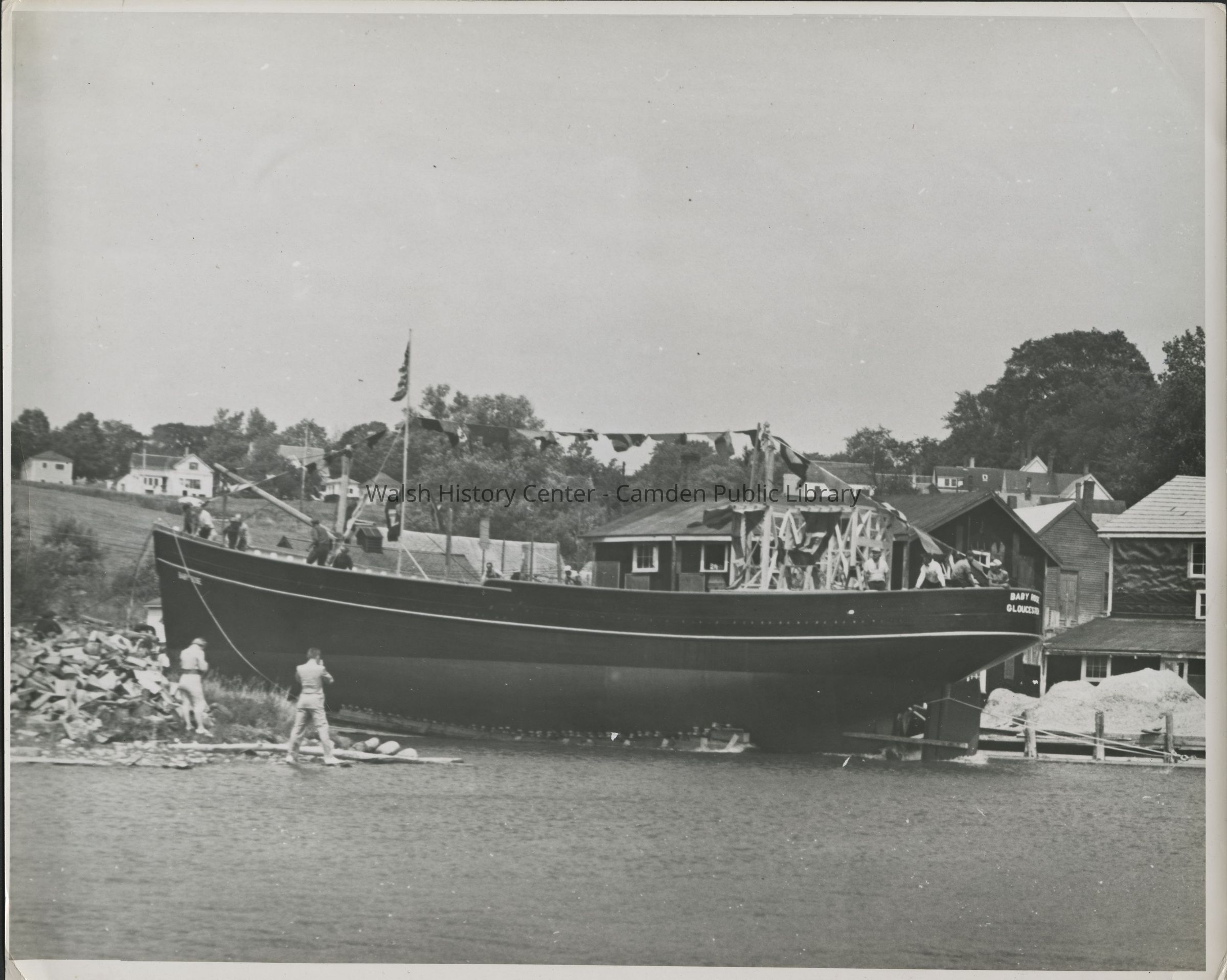 Collection of 16 photographs and two articles about shipbuilding at the Morse shipyard in Thomaston, Maine. The shipyard built fishing trawlers that were converted for use as minesweepers during World War II.Collection