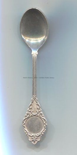 Silver spoon with "Perfection Cameo" on the back of spoon handle. Was found during renovations of the Grinnell house at 9 Union Street in Camden, Maine. Likely a souvenir spoon with decoration missing from the handle.Collection