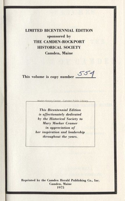 Sketches of the History of the Town of Camden, MaineEntry/Object ID