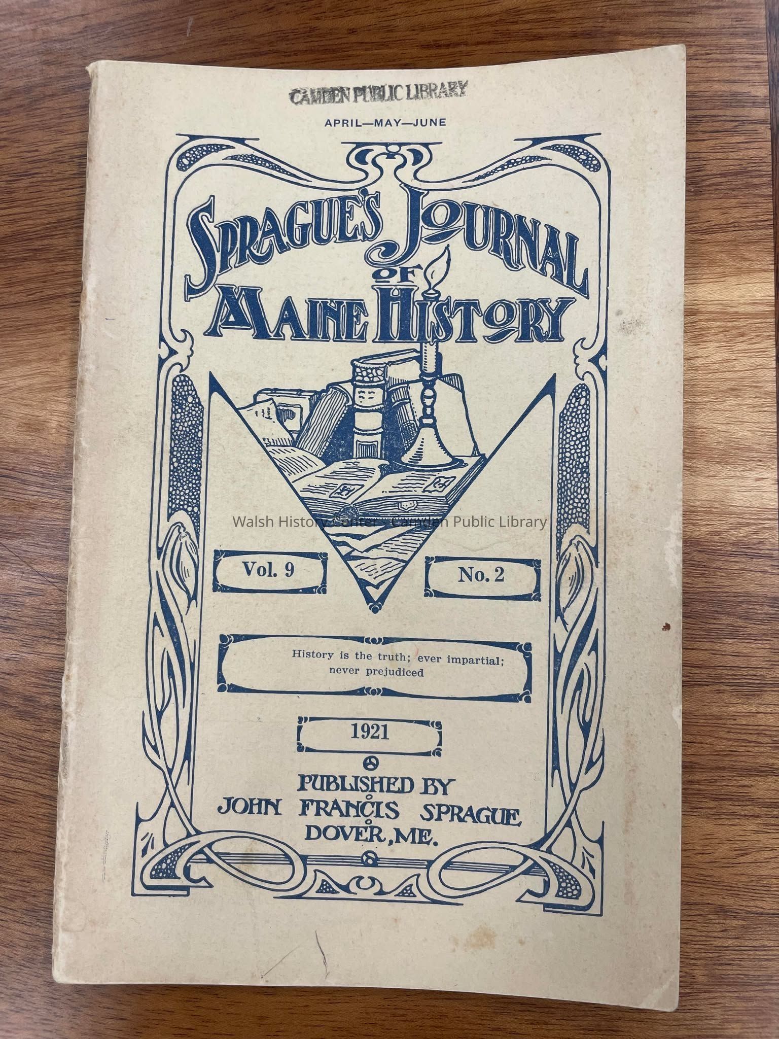 This is Vol. 9 No.2 of Sprague's Journal of Maine History published by John Francis Sprague in Dover, Maine. This issue is for the months of April, May, and June 1921. This issue contents include: