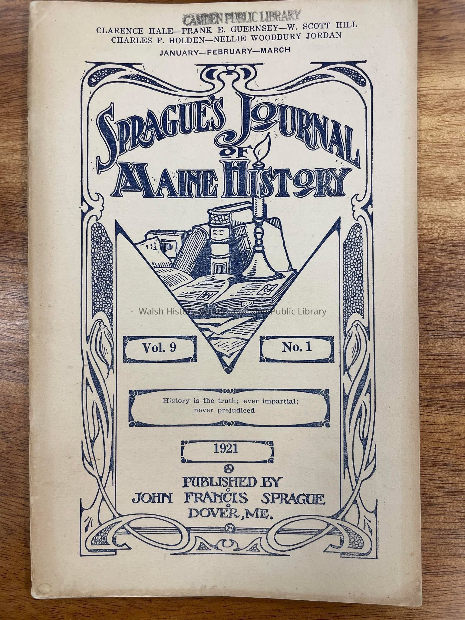 This is Vol. 9 No.1 of Sprague's Journal of Maine History published by John Francis Sprague in Dover, Maine. This issue is for the months of Jan., Feb., Mar. 1921. This issue contents include: