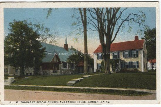 Colored postcard of St. Thomas Episcopal Church on Chestnut Street in Camden, Maine.Collection