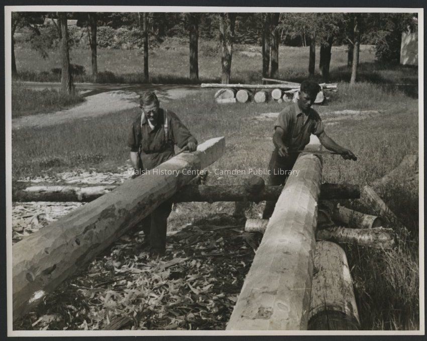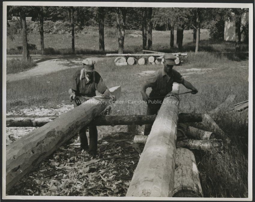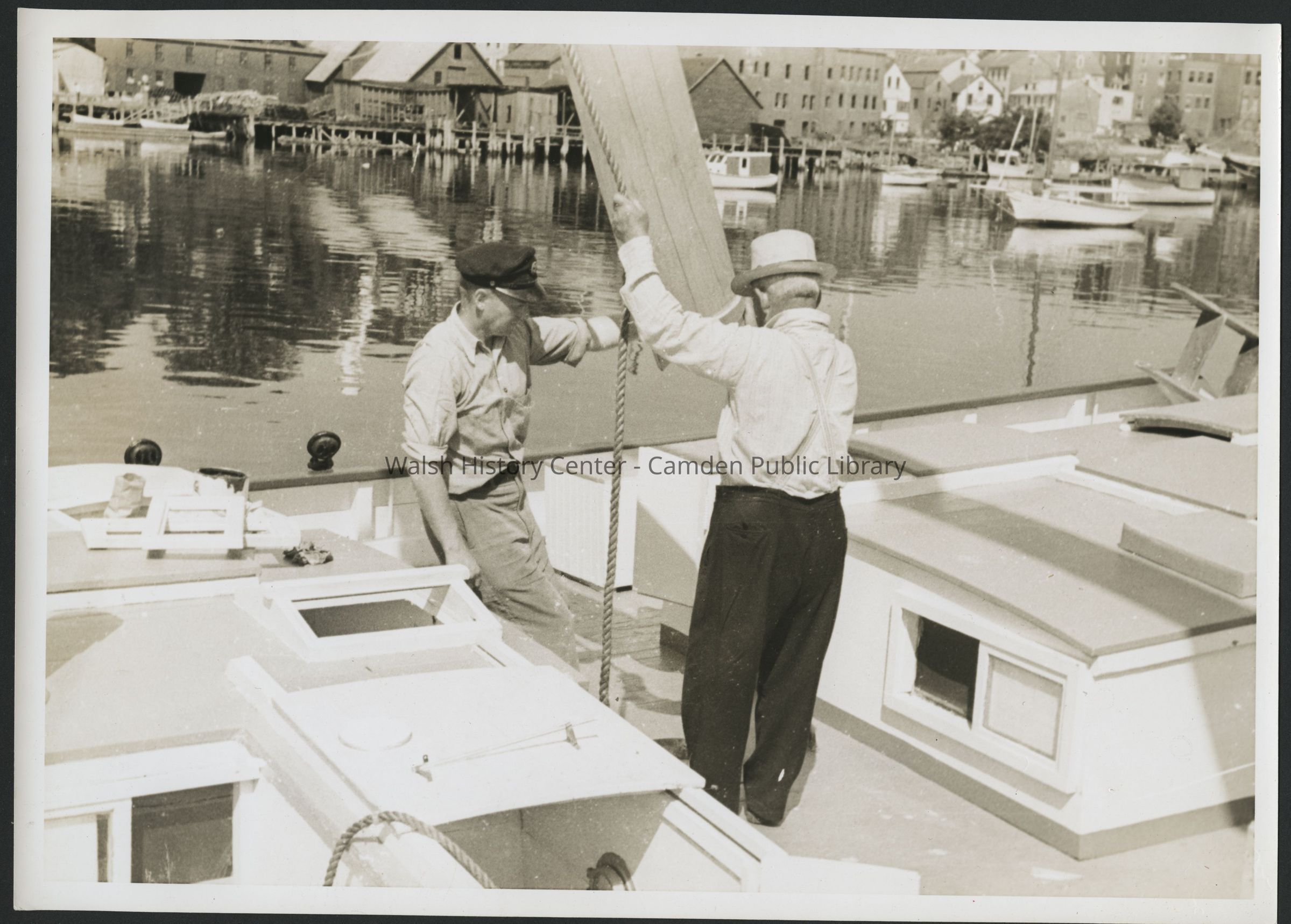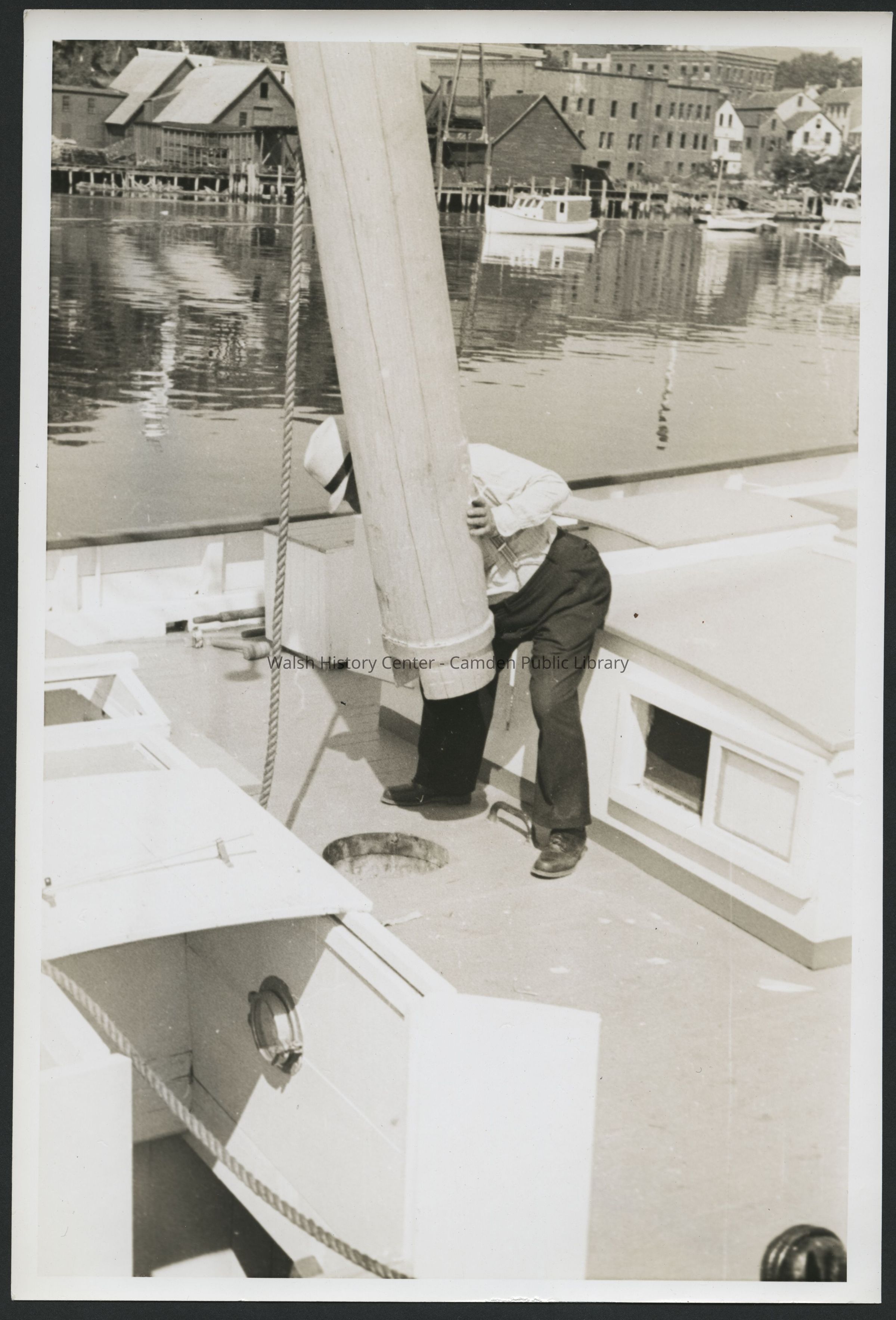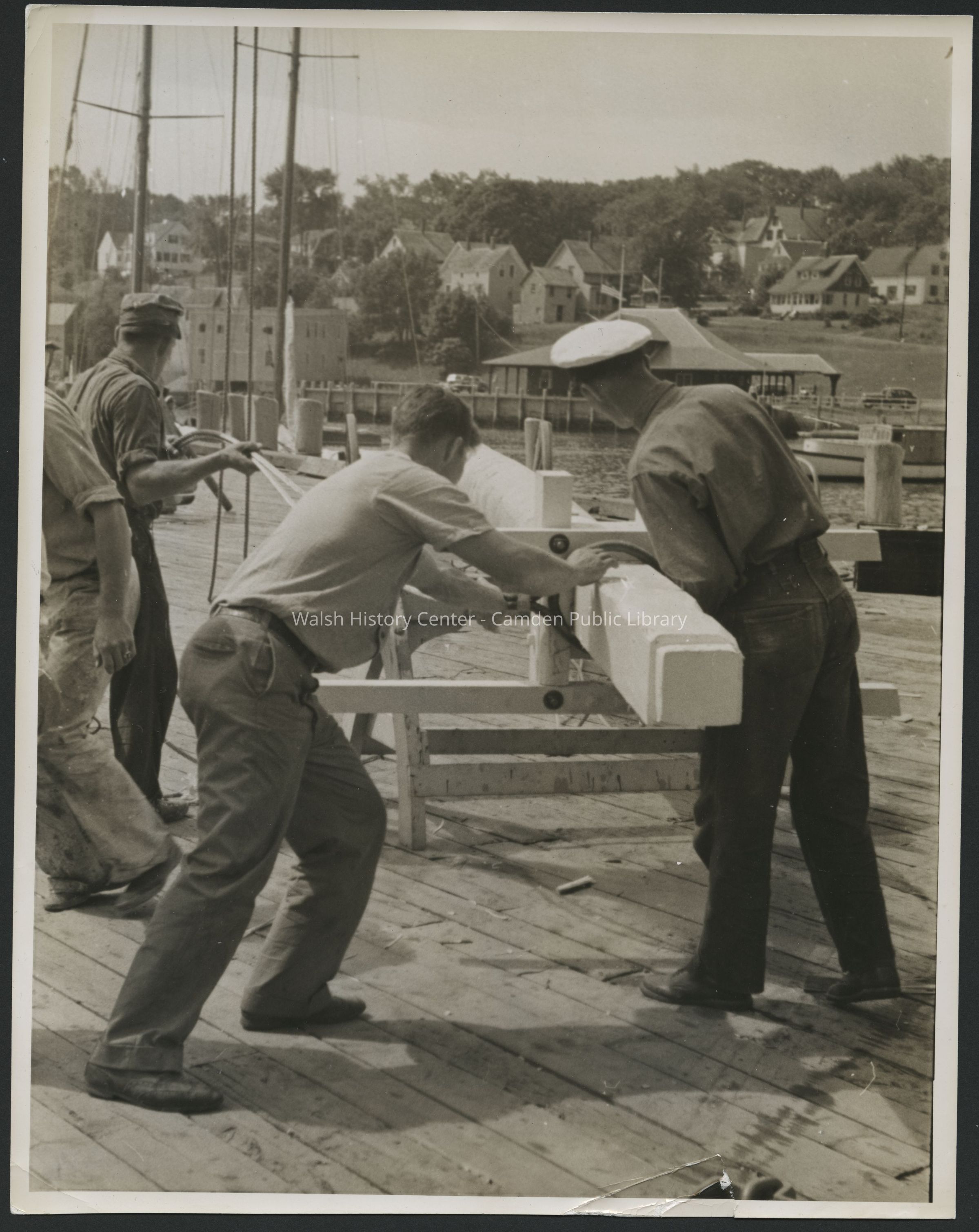 Thirteen photographs and one related article in Yankee Magazine (September 1941) about stepping a mast at the Camden shipyard in Camden, Maine. Article written by Betty Foxwell and features pictures of master sparmaker Clyde Merrithew and sailmaker E.J. Bohndell.Collection