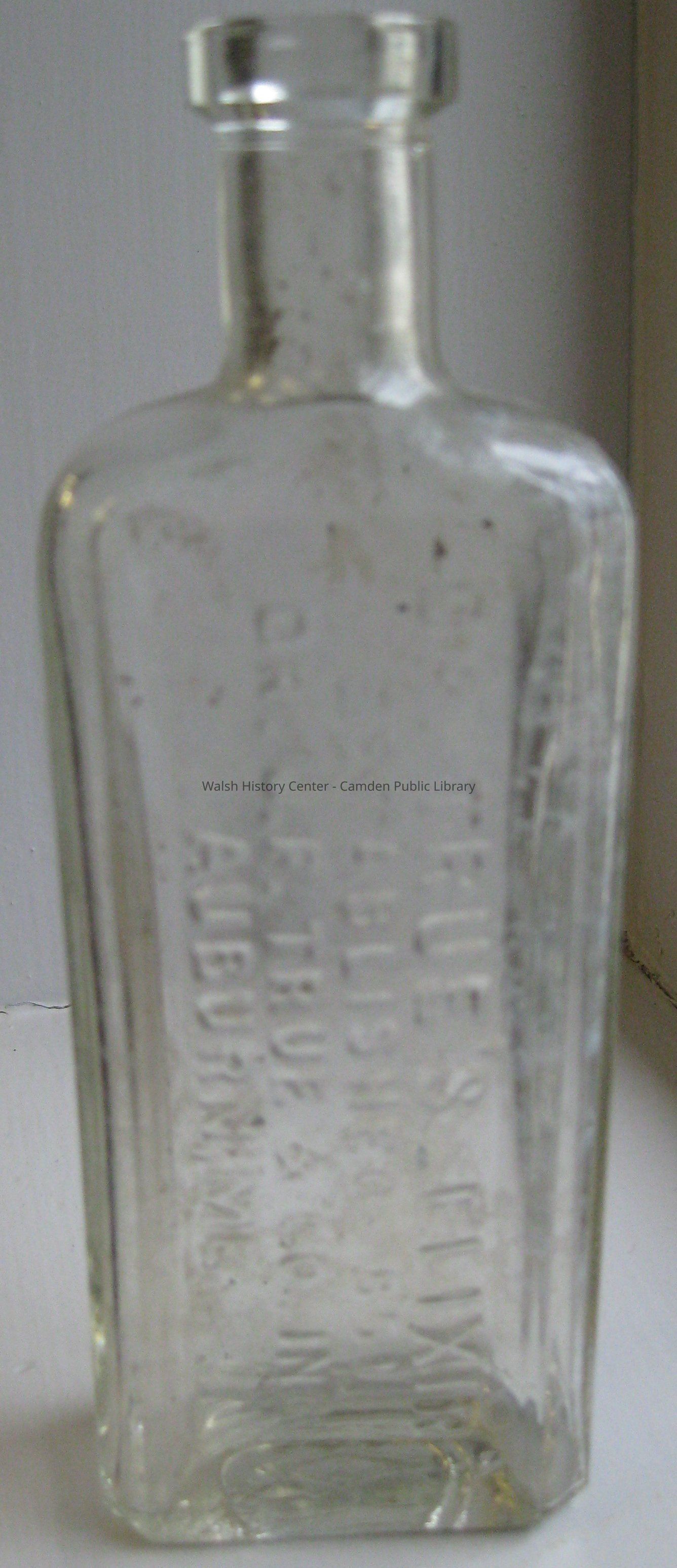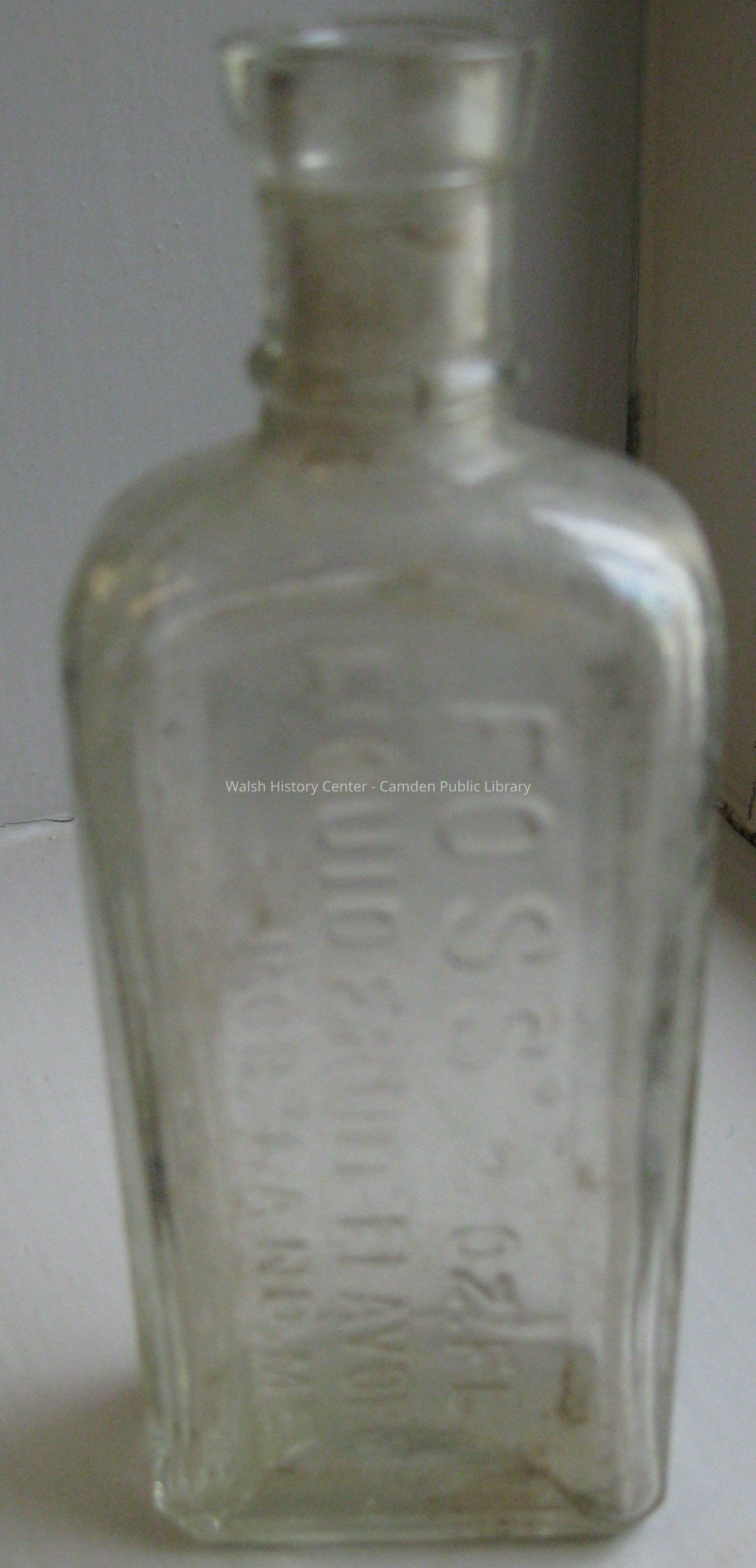 One is a Dr. True's Elixir bottle. This elixir, a laxative and tape worm remedy, was patented by a doctor in Auburn, Maine and sold from the 1850's to the early 1900's. The second is a Foss Liquid Fruit Flavor bottle. This company operated in Portland from the late 1800's to the mid 20th-century.Collection