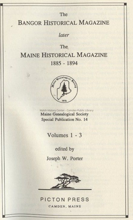 The Bangor Historical Magazine later The Maine Historical Magazine 1885 - 1894Entry/Object ID